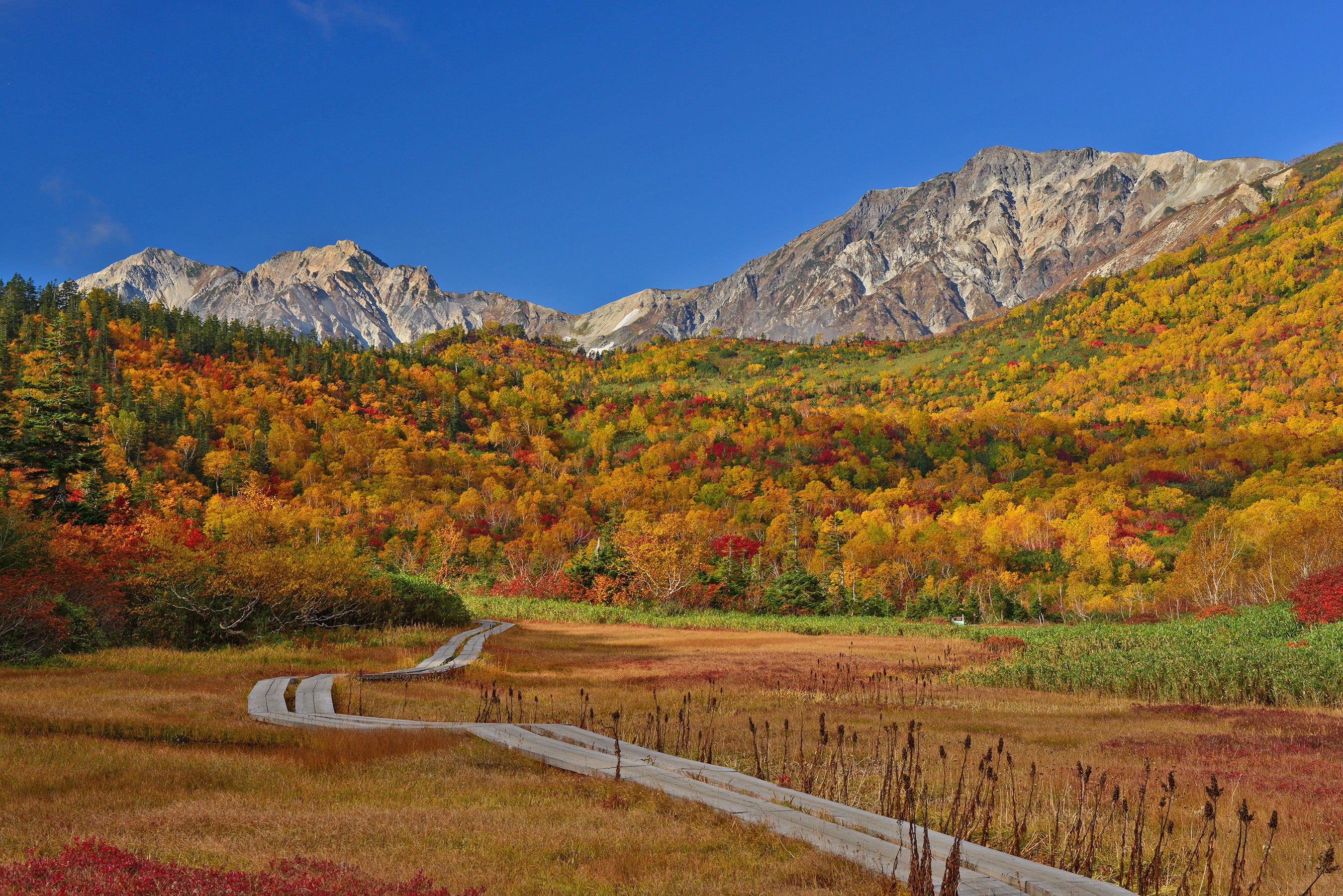 北アルプスの山々の連なる風光明媚な自然を表現。