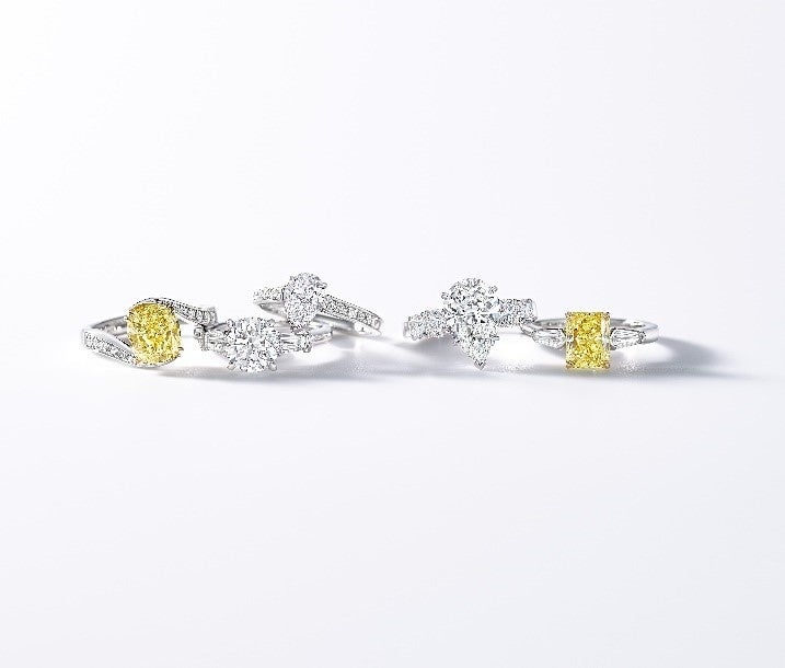 (左から)  リング(Pt、ダイヤモンド) 中石約0.25ct /脇石計約0.48ct ¥594,000~