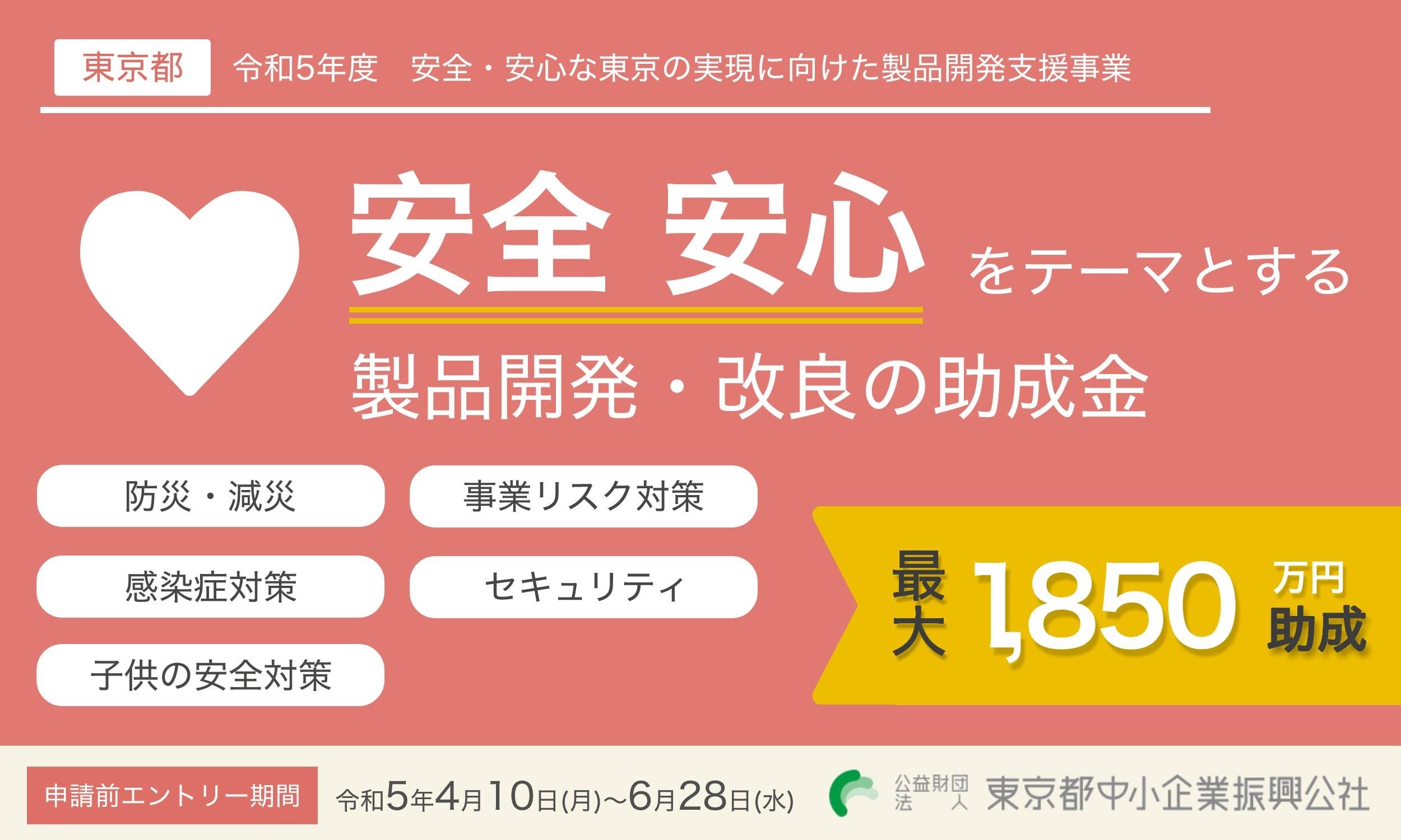 東京都 安全・安心がテーマの製品開発などに助成金【最大1,850万円】
