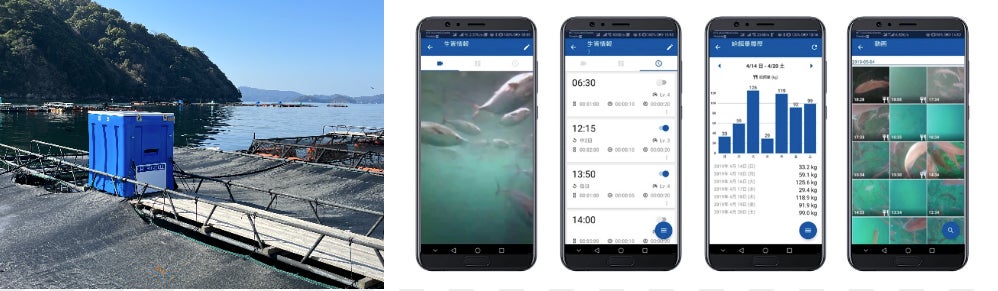 ② 生産者にもやさしい:養殖場から離れていてもスマートフォンなどの端末から遠隔で魚の様子を確認し、餌やりを行うことができるため、労働負荷を低減します。