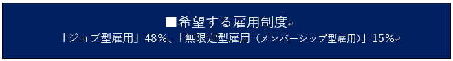 ※調査では、「ジョブ型雇用」「無限定型雇用(メンバーシップ型雇用)」を以下のように定義しました。ジョブ型雇用:働き手の職務内容や勤務地をあらかじめ明確に規定して雇用する制度のこと。事業展開に合わせて外部労働市場から機動的に人材を採用する欧米企業に広く普及している。
