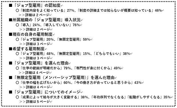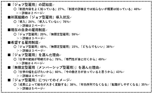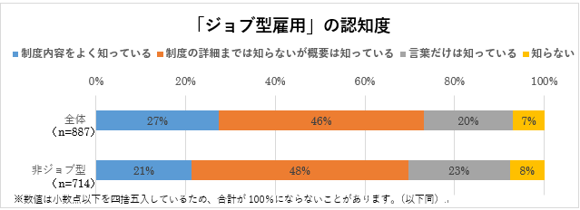 「ジョブ型雇用」の認知度や現在の雇用制度、「ジョブ型雇用」で働くことを希望するか、「ジョブ型雇用」のイメージなどを聞きました。ビジネスパーソンが「ジョブ型雇用」をどのようにとらえているのかが分かります。