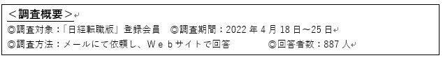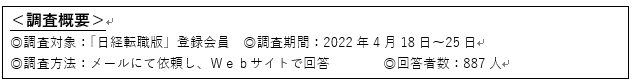 株式会社日経HR(本社:東京都千代田区、代表取締役社長:齋藤惠)は2022年4月中旬から下旬にかけて、「日経転職版 ジョブ型雇用に関する意識調査」を実施し、887人から回答を得ました。