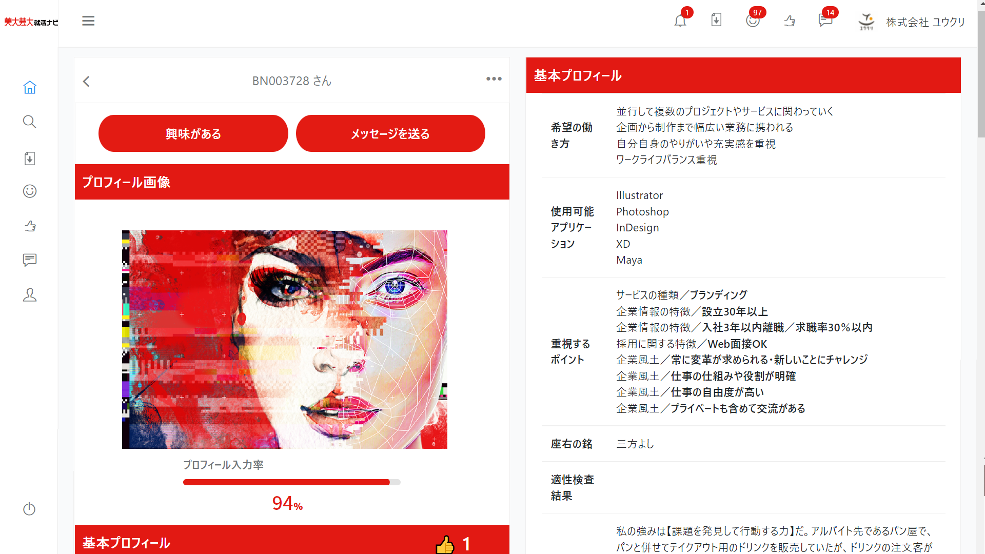 「美大芸大就活ナビ」は、美術系学生に特化したダイレクトリクルーティングプラットフォームです。独自のノウハウを活かした志向性マッチング項目や人材コンサルタントによるイベントなどにより、ミスマッチの少ないピンポイントな採用活動を支援しています。