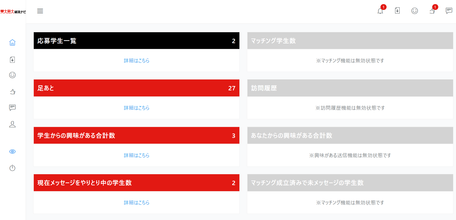 ・学生から「興味がある」や「応募」を受け付けることができる! ※機能一部限定