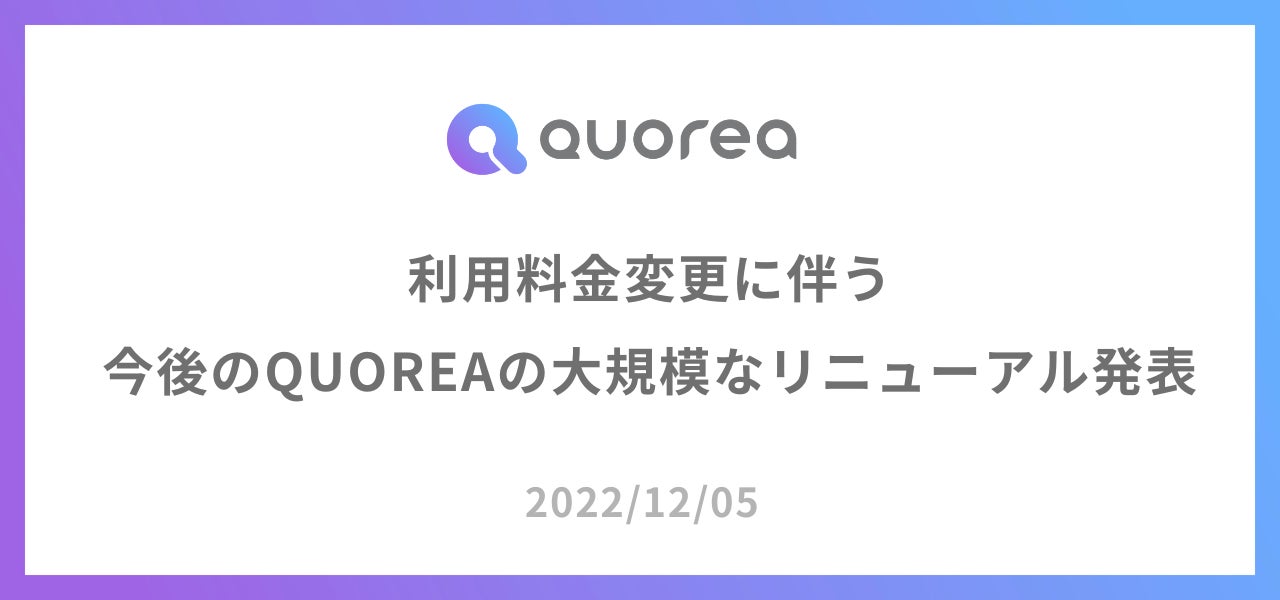 利用料金変更に伴う今後のQUOREAの大規模なリニューアル発表につきまして