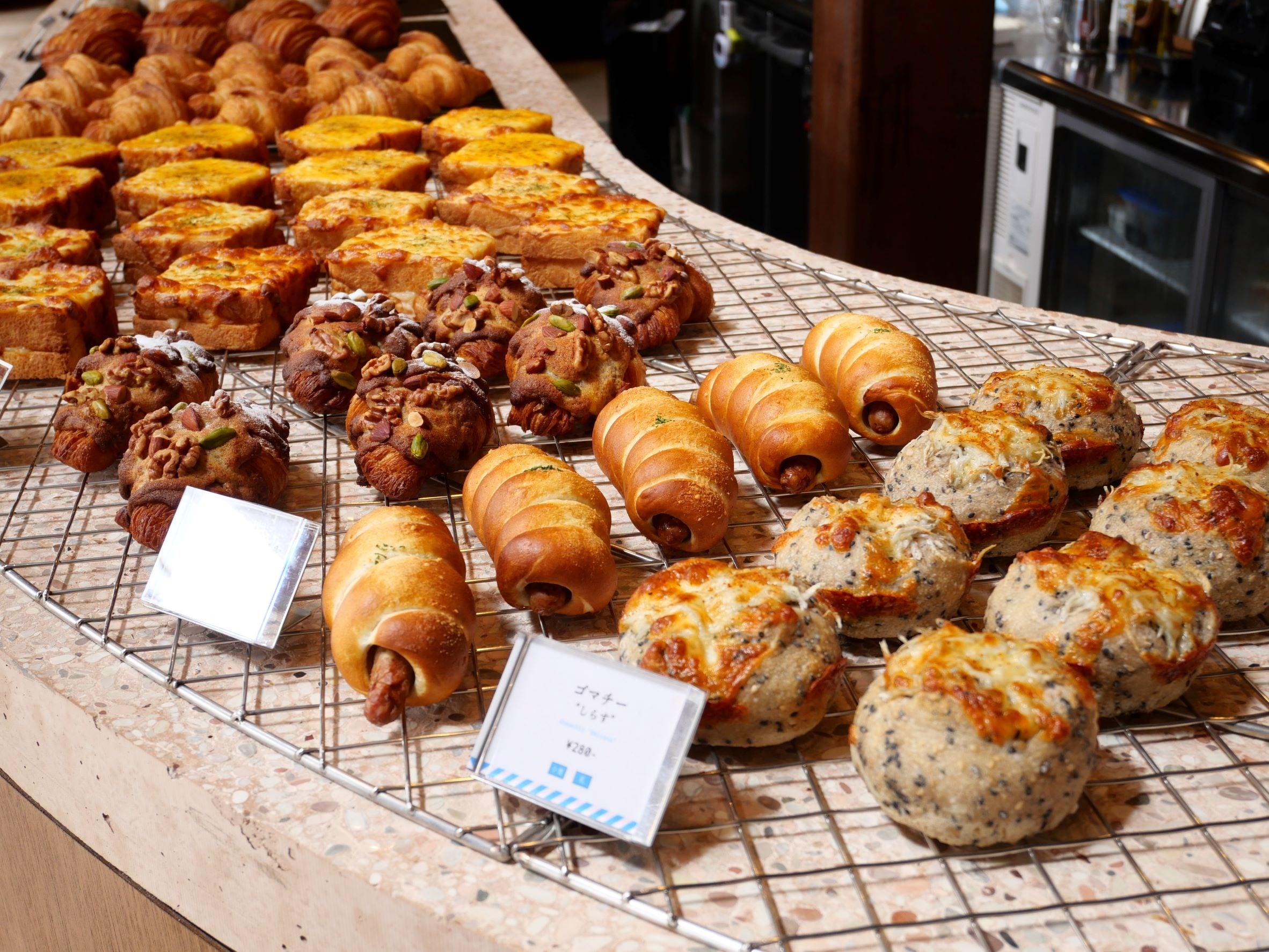 ■メニュー:モーニング(餡バタートースト・フレンチトーストセット…)、ランチ(しらすトースト・プレッツェルベーグル・イングリッシュマフィンサンド・パニーニ…)、カフェ(フレンチトースト・コーヒーゼリーサンデー…)