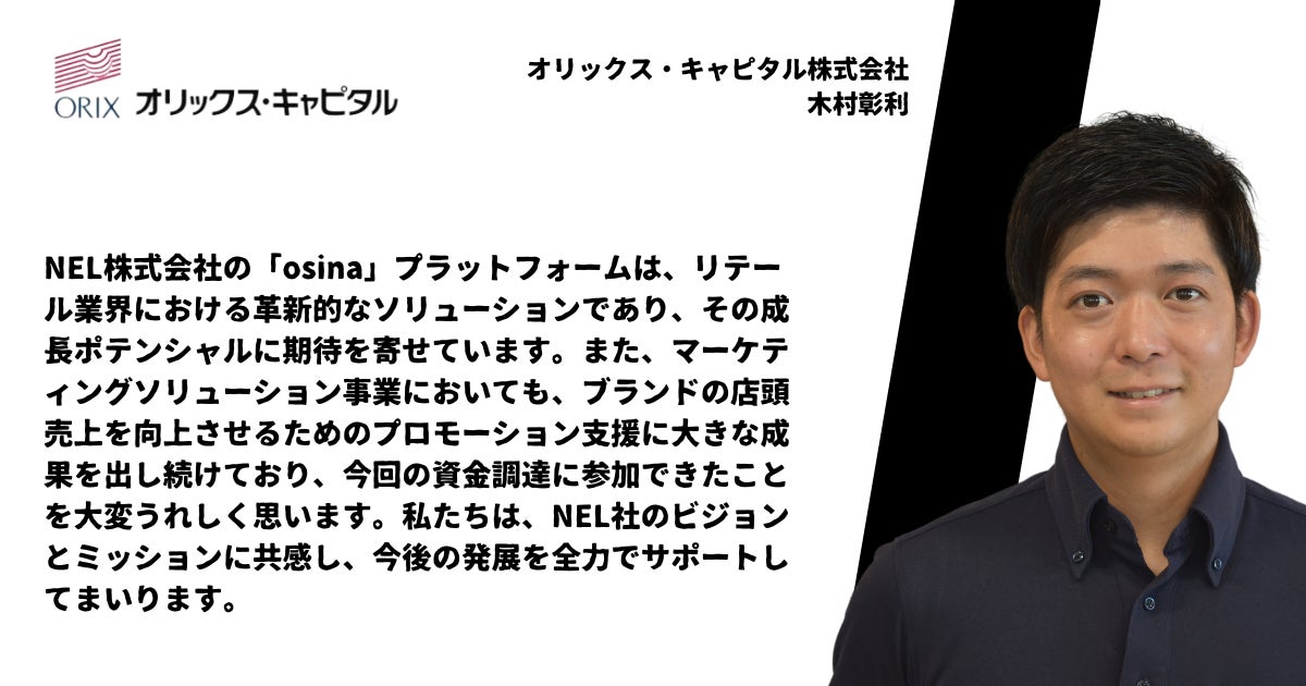 「osina」を運営するリテールテックカンパニーNELが累計約7.5億円の資金調達