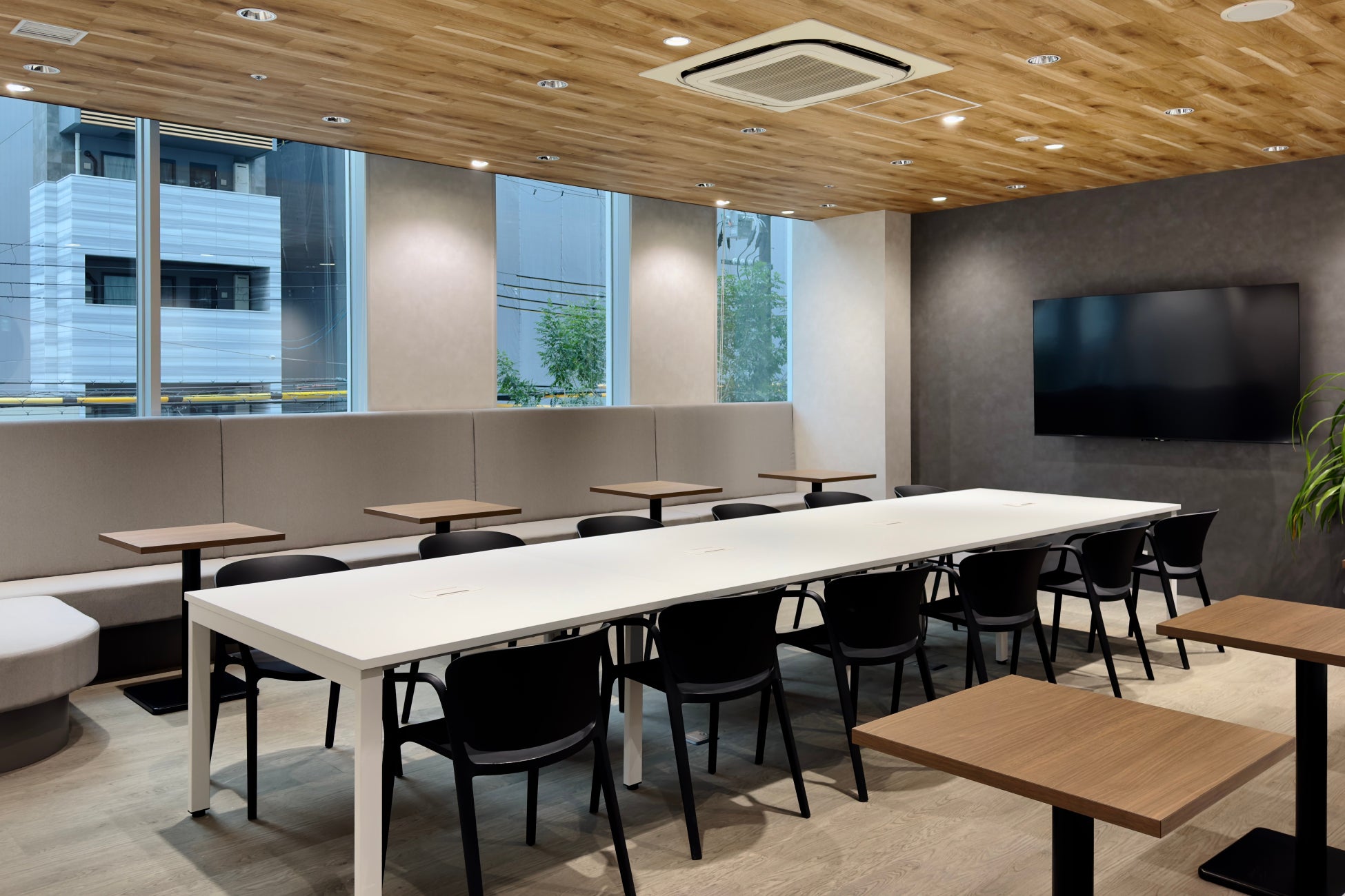 ブランドカラーに包まれた一体感のある空間の中で、部署や立場を越えた対話が生まれ、新たな視点やアイデアにつながることを期待しています。