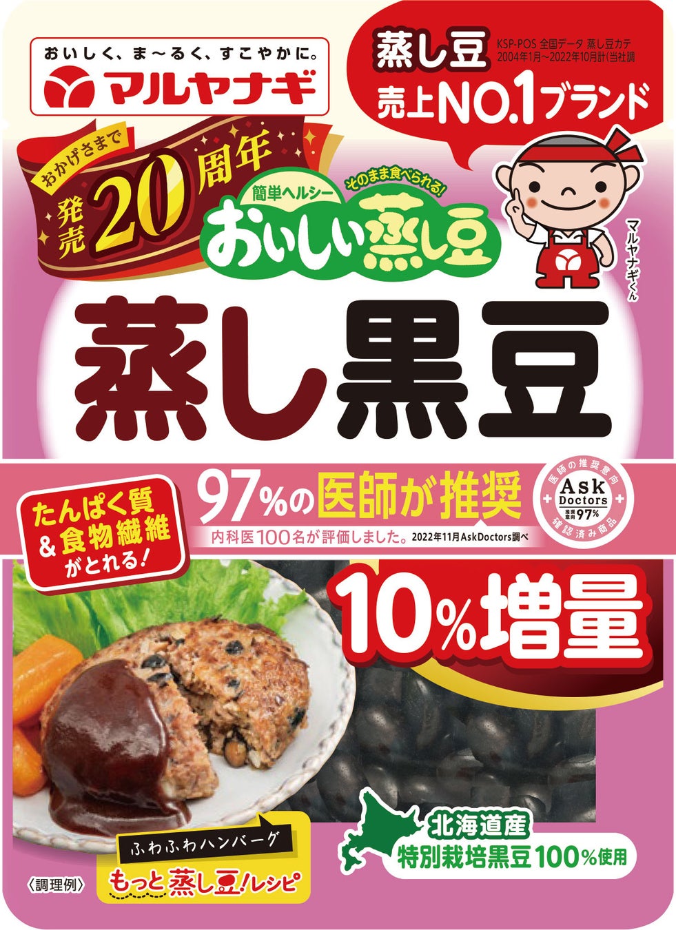 シェアNo.1※マルヤナギの蒸し豆が増量!1/1より期間限定10%増量で消費者応援