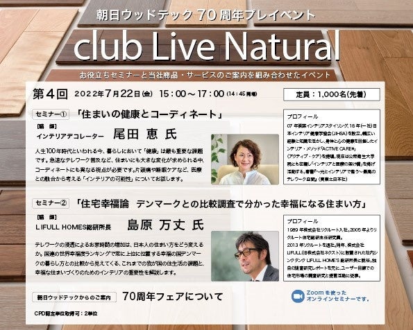 110年、創立から70周年を迎えます。この節目を迎えるにあたり、各業界で活躍されている方々を講師として招いた全4回のオンラインセミナーイベント「club Live Natural」を開催しています。