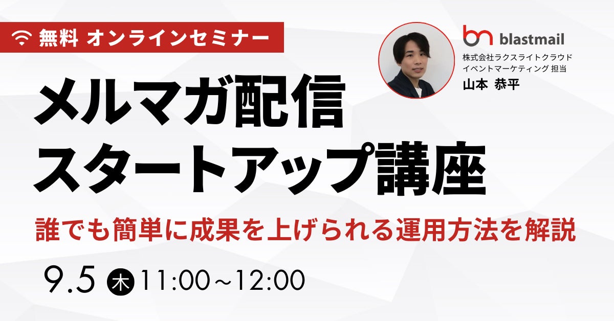 メール配信システム「ブラストメール」、9/5(木)11時より「メルマガ配信スタートアップ講座 誰でも簡単に成果を上げられる運用方法を解説」無料オンラインセミナーを開催