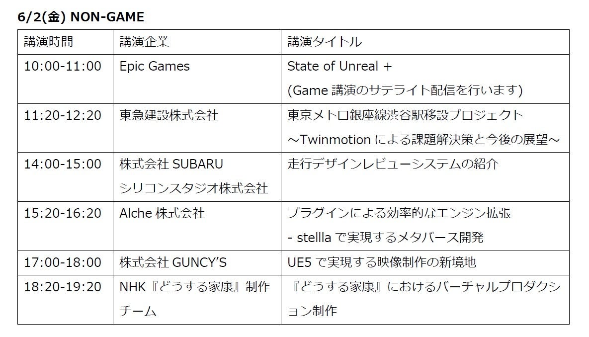 6/2(金) Unreal Showcases では、ゲーム業界だけでなくノンゲーム分野における事例まで幅広い講演をお届けします。