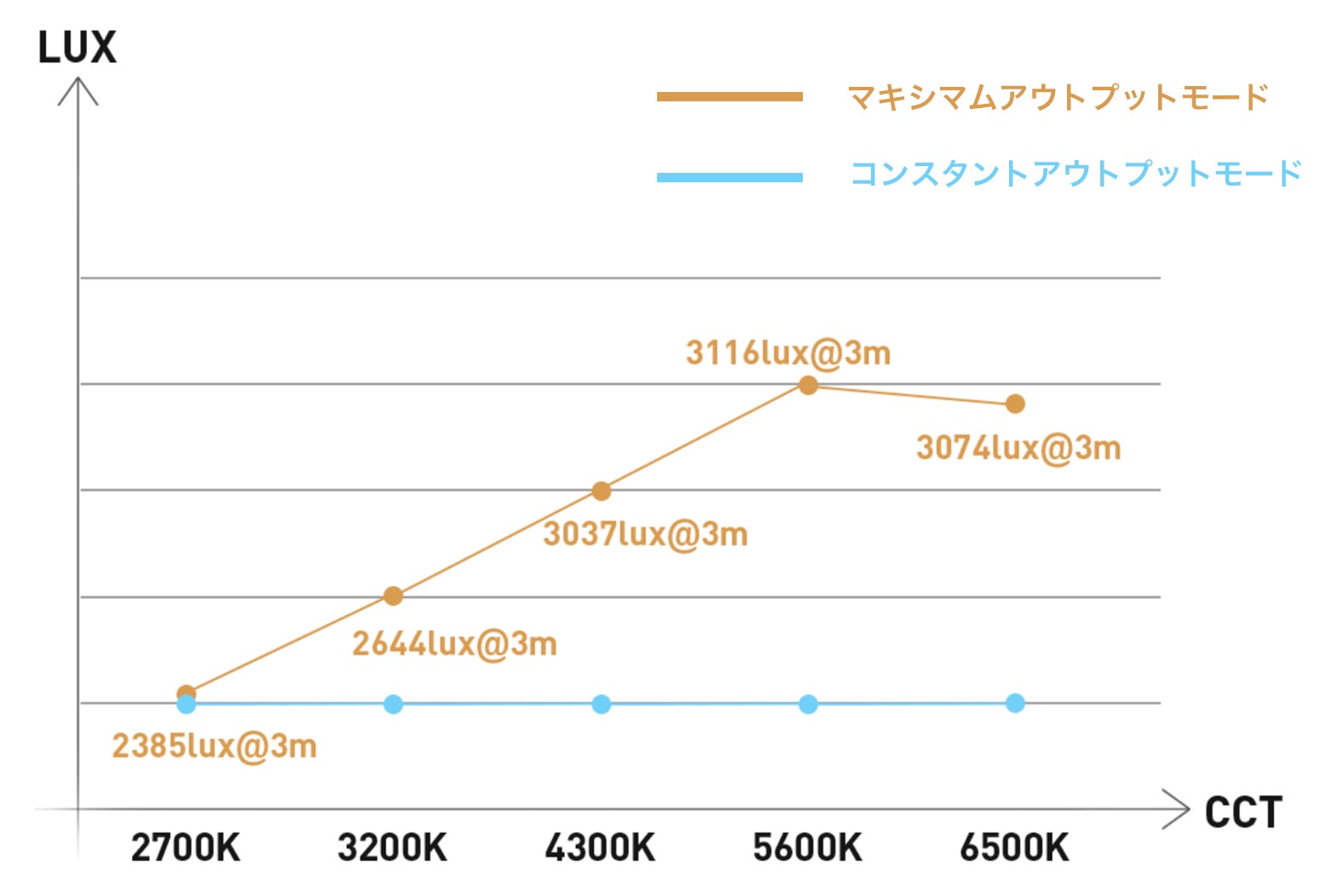 ■一定の輝度で色温度の調節ができるコンスタントアウトプットモードが搭載