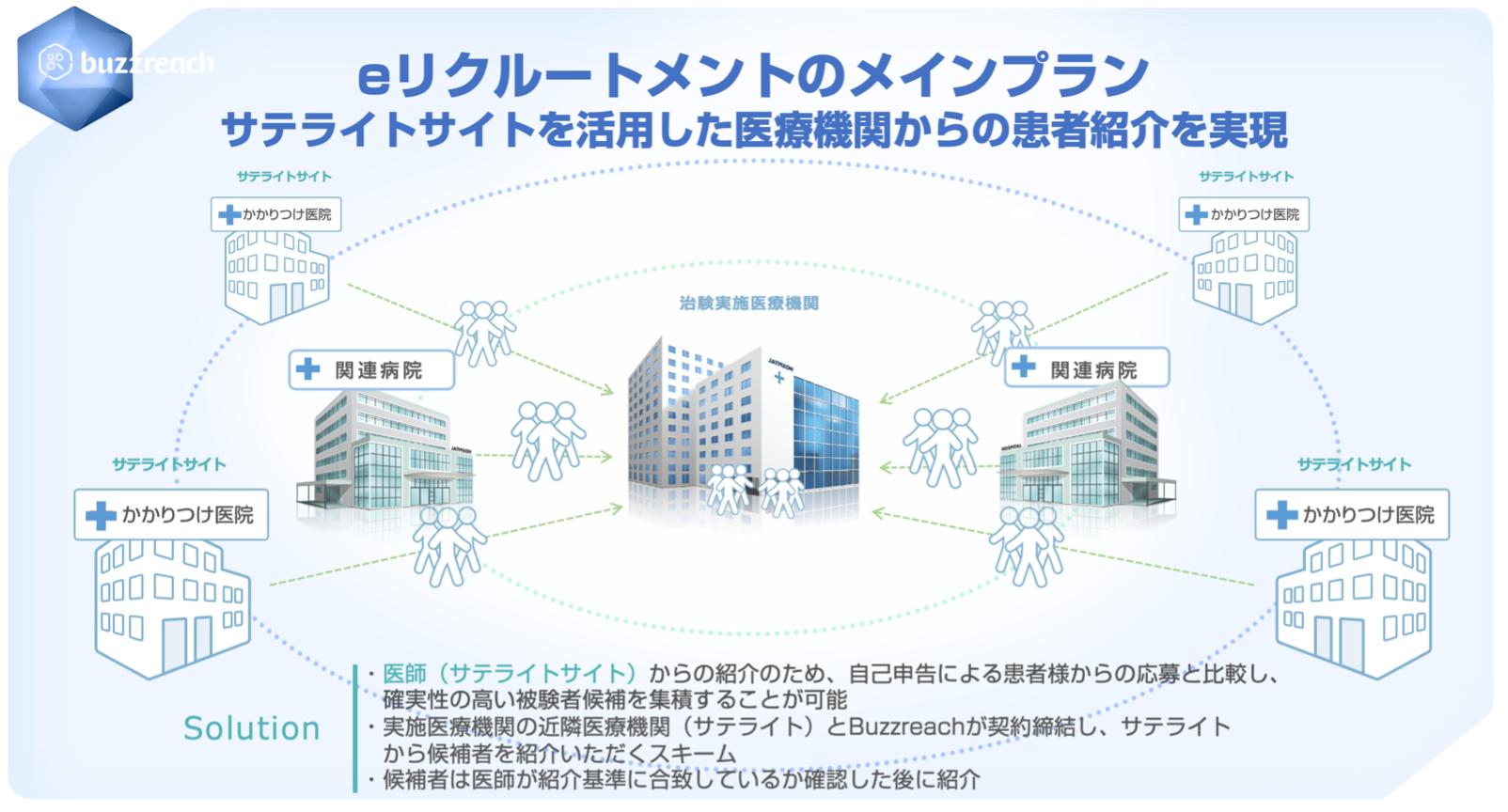 また、被験者募集事業(eリクルートメント)においては、DCT Japan及びBuzzreach両社が持つ医療機関/医師ネットワークを活用し、全国にこれを拡大し、共同でインフラの整備・サービスの提供を行います。