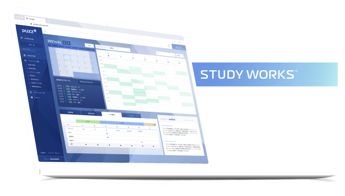 Study Worksは治験実施医療機関向けに開発された治験業務(プロジェクト)管理システムです。