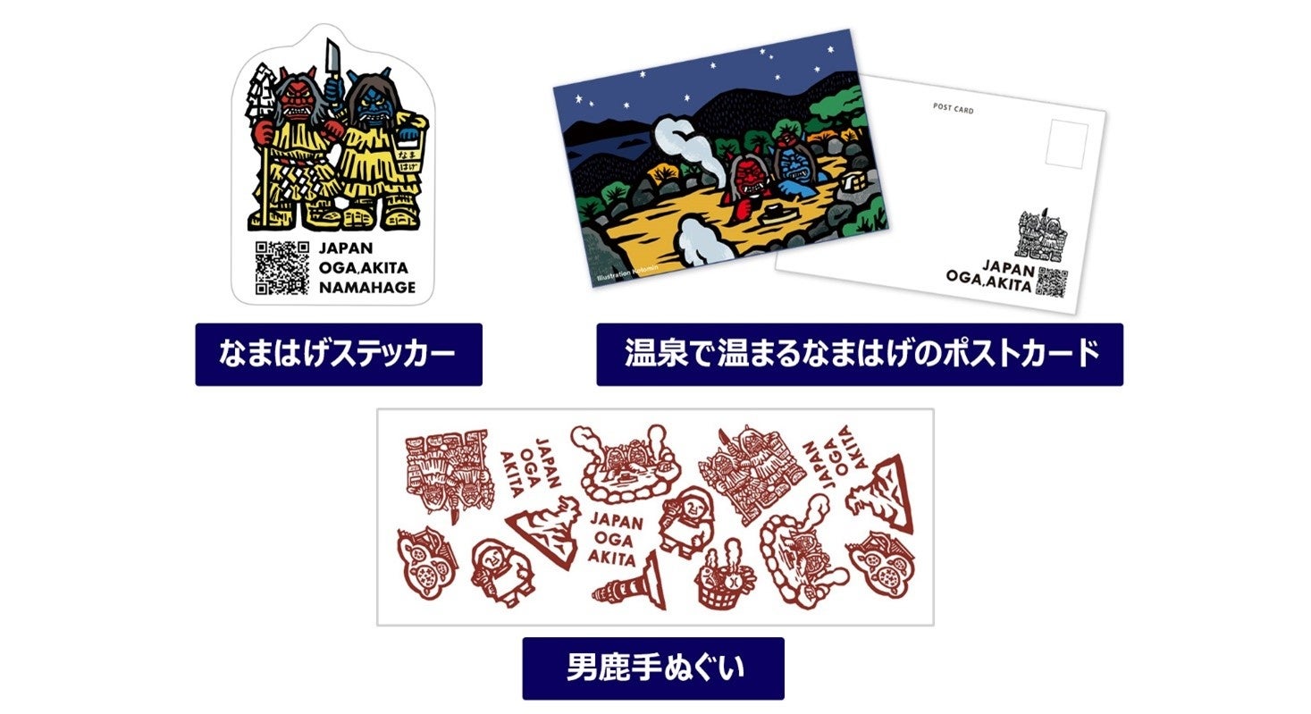 ご来場いただいたお客様へ、男鹿市を知るきっかっけづくりを図るため「男鹿温泉で温まるなまはげのポストカード」と「なまはげステッカー」をプレゼントいたします(無料/先着500名様を予定)。