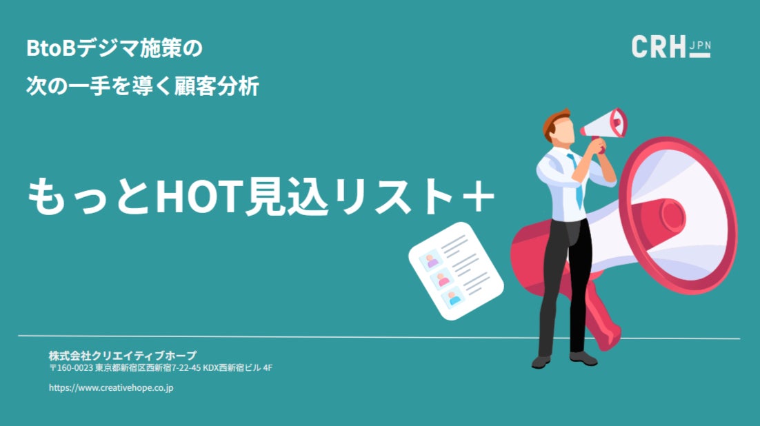 株式会社クリエイティブホープ(代表取締役:藤井 廣男)は、見込み顧客リストを効果的に活用し、商談創出を最大化する顧客分析ソリューション「もっとHOT見込リスト+」を正式にリリースいたします。
