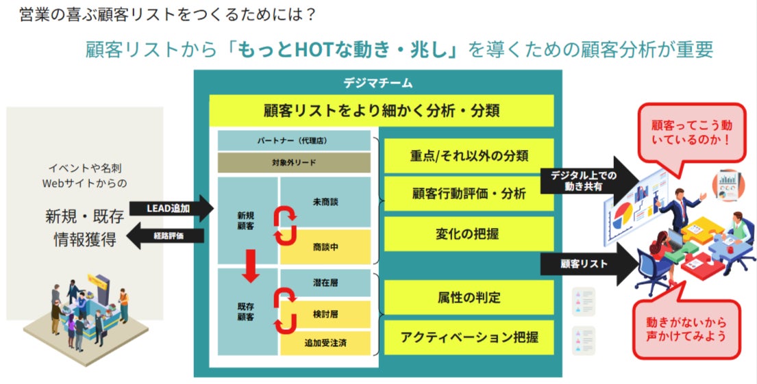 企業はイベント参加者、名刺交換、Webサイト訪問者などから膨大な顧客情報を収集していますが、多くは「ごった煮状態」で価値を引き出せていません。