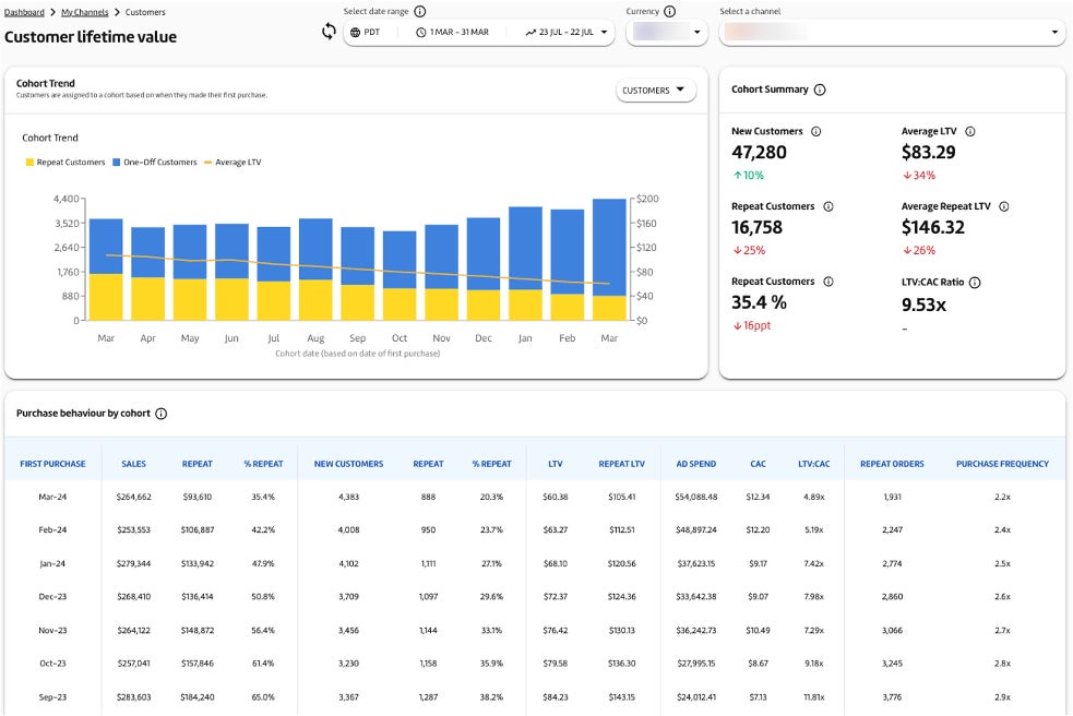 重要性: 新規顧客を特定することで、ブランドは顧客との関係構築に向けたマーケティング施策を調整し、リテンション(継続的な購入)を強化し、ライフタイムバリュー(LTV)の向上を目指すことができます。