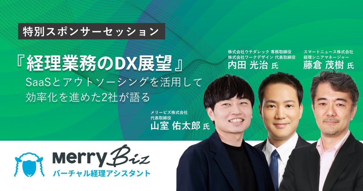 コロナ禍を契機としたDXへの関心の高まり、電子帳簿保存法・インボイス制度をきっかけとしたSaaS導入、業務見直しなど、経理を取り巻く環境が変化する今、どのような改革を進めるべきでしょうか。事業急成長のなかSaaS活用により効率化を進めたスマートニュース藤倉氏、DX推進により業界初の週休3日制を実現したウチダレック内田氏、モデレーターをメリービズ山室が務め、経理のDXについてディスカッションを行います。