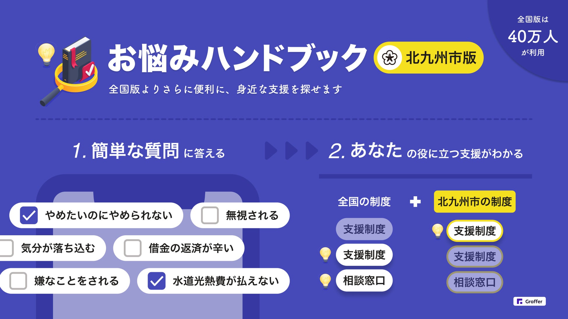 自治体初(*1)!一人ひとりの悩みごとに合わせて適切な支援を案内する「お悩みハンドブック」が自治体向けのカスタマイズ機能を提供開始