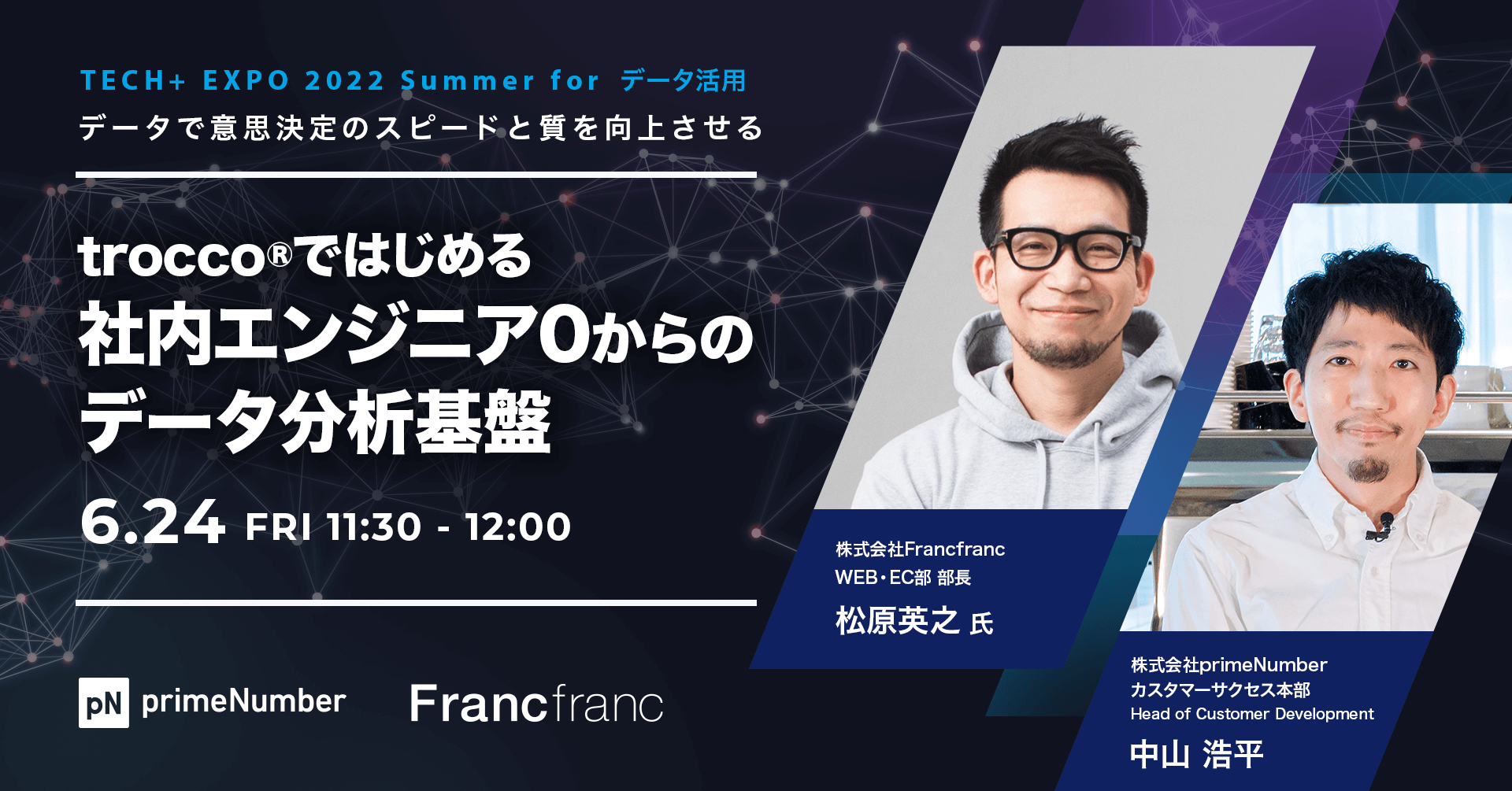 primeNumber社、マイナビ主催「TECH+ EXPO 2022 Summer for データ活用」に協賛 Francfranc社によるデータ分析基盤の事例を紹介