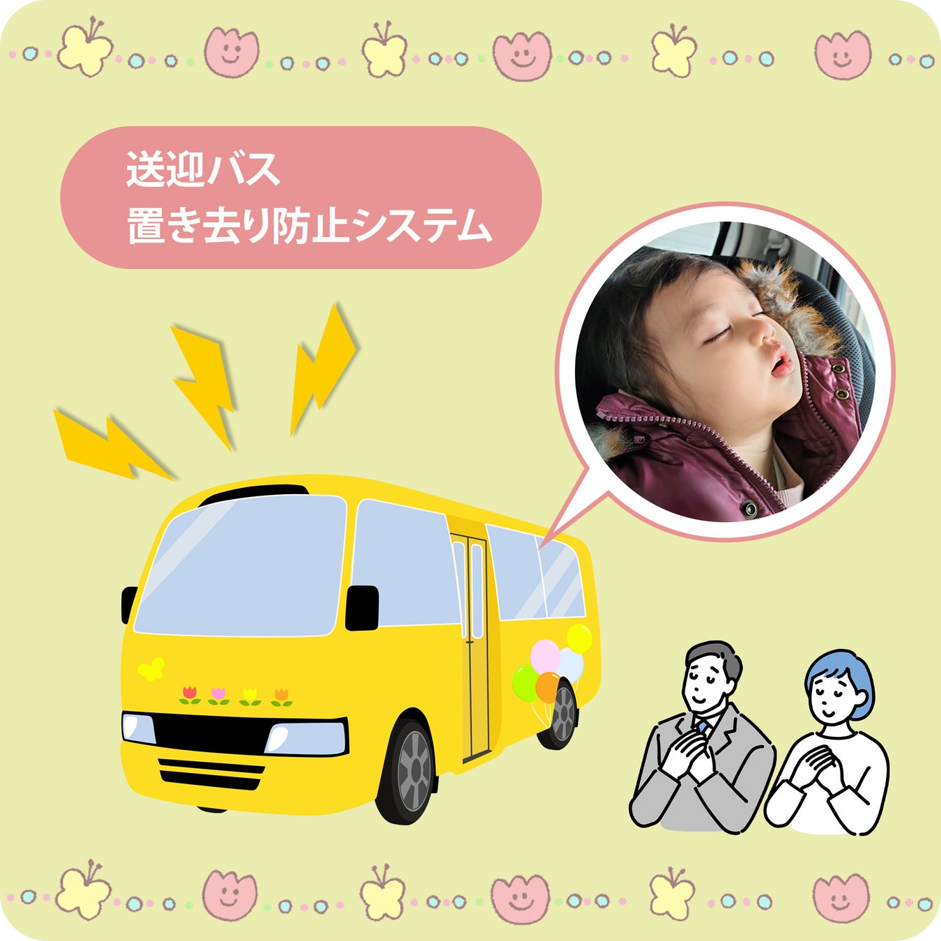 *送迎用バスの置き去り防止を支援する安全装置のガイドライン適合認定申請中。