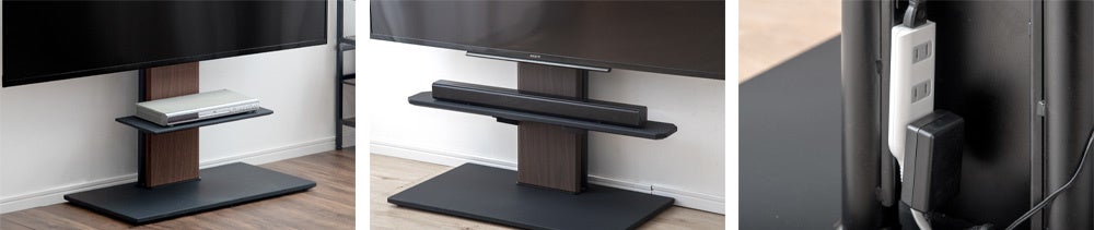 より良い音響でテレビを視聴したい方のために、別売りでサウンドバーの棚板をご用意しました。こちらも付属の棚板同様、高さの調節が可能です。
