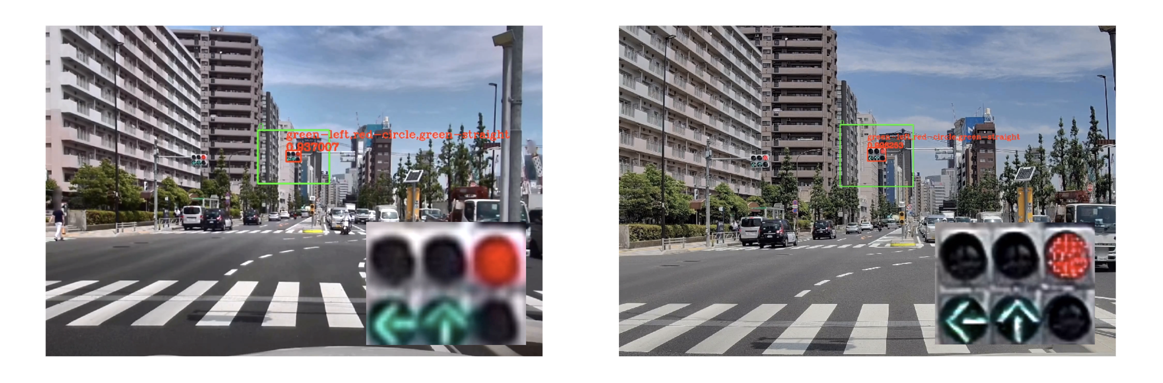 C1カメラ(左)とC2カメラ(右)の解像度比較(信号認識)