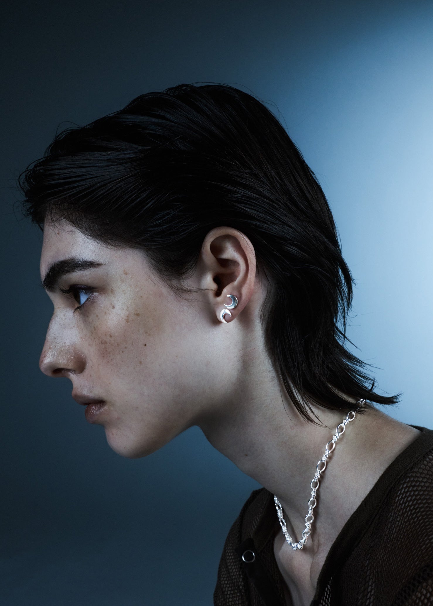 "世代を超えて自分らしく飾る" をテーマに、 異なる感覚、カルチャーを独自のフィルターに通すことで生まれたユニークでエッジの効いたデザインジュエリー。 重ね付けやミックスアンドマッチの組み合わせを楽しめるのが特徴。 幾通りにもスタイルが作れるネックレス、エキセントリックなシルエットのピアスは、大胆かつ刺激的なムードが気分を明るく盛り上げます。 ジェンダーレスでフリースピリットが光るコレクションを是非ご覧下さい。