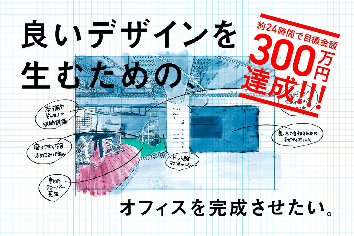 約24時間で目標金額300万円達成! 〜良いデザインを生むためのオフィス「デザインのパワースポット」を完成させたい〜 クラウドファンディング