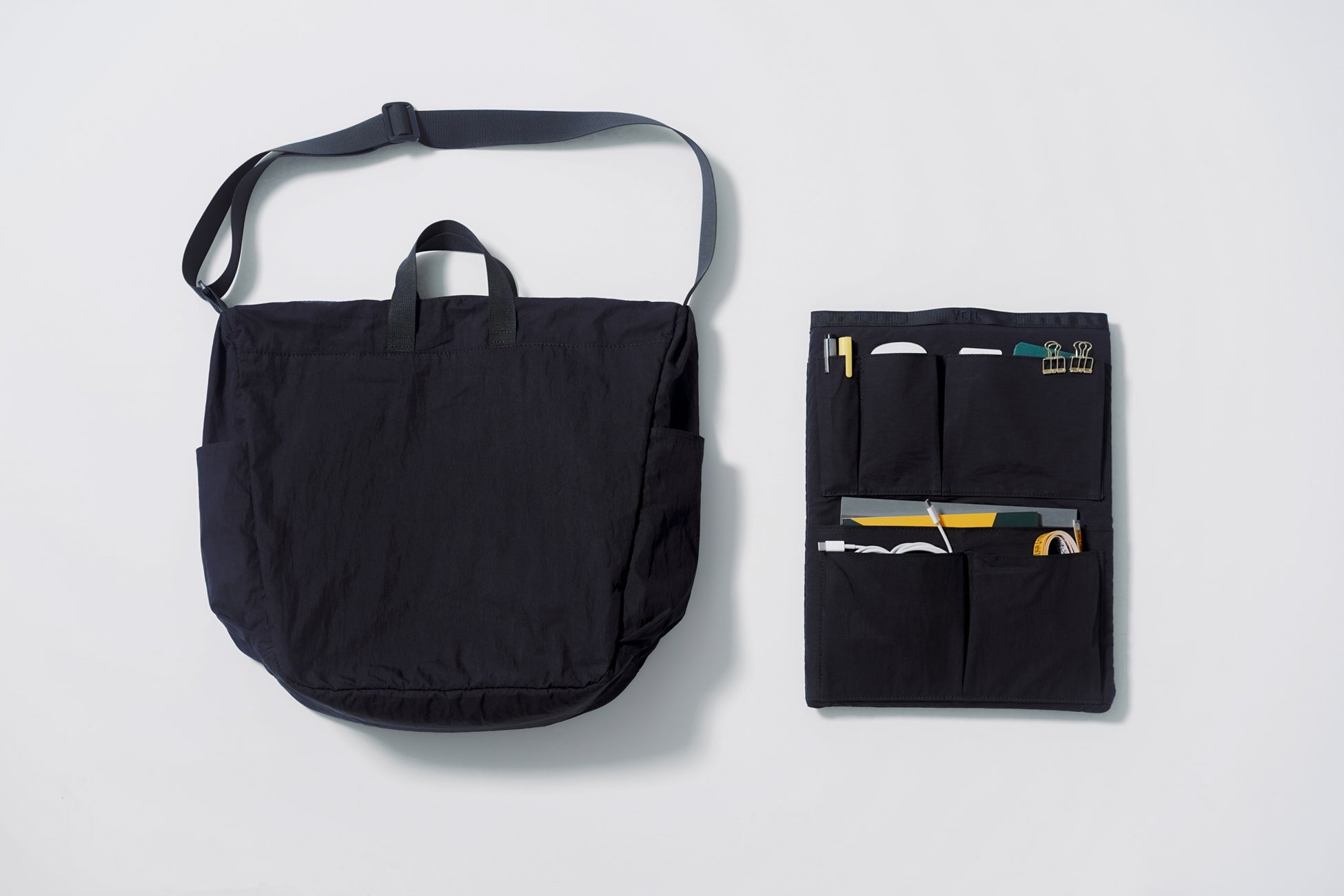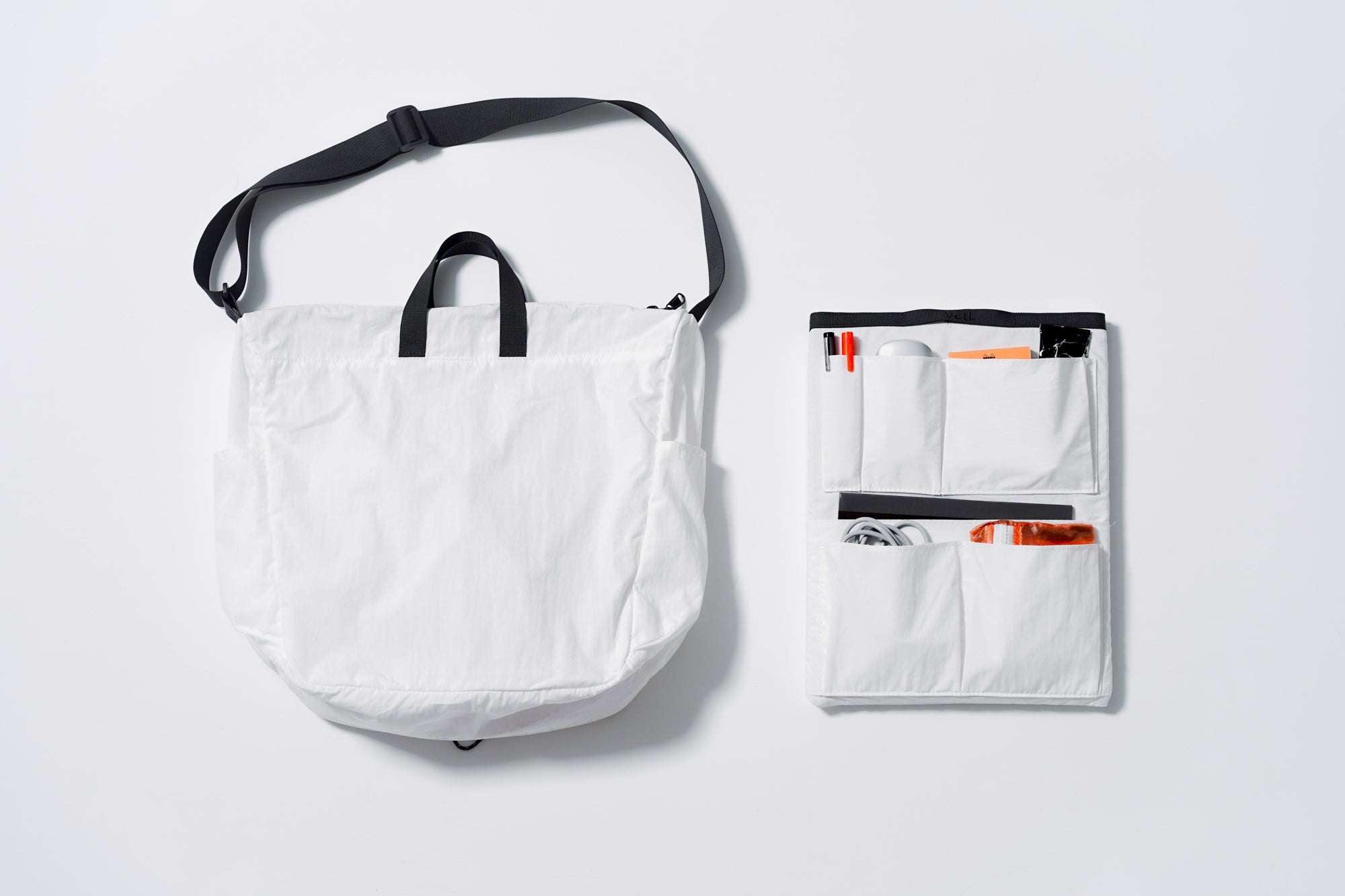 洗いやすく乾きやすいアウターバッグと、小分けポケットがついたインナーバッグを組み合わせる新発想のバッグ