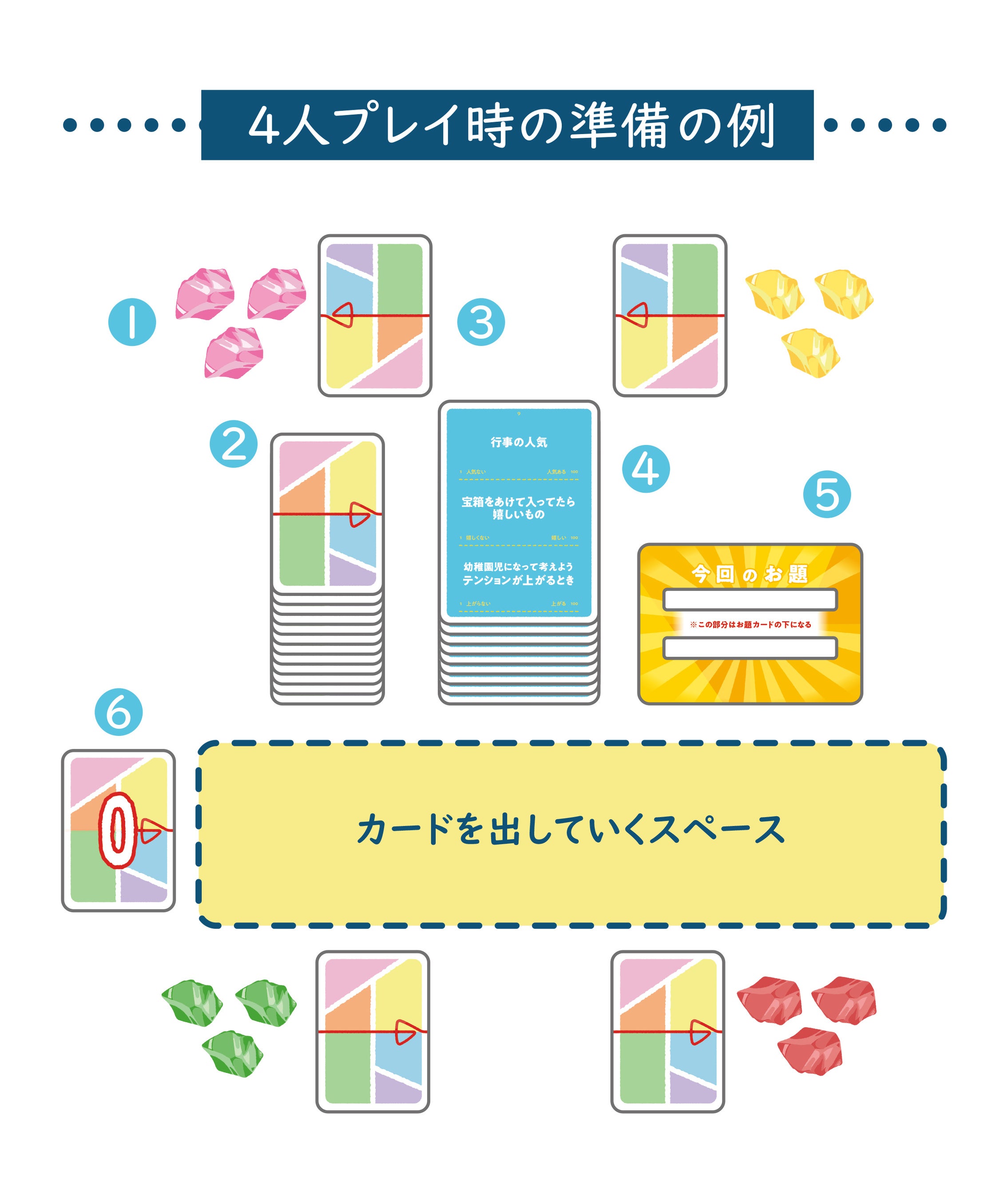 ただし、数字を直接言うのはNG! みんなの「たとえ」を比べる会話が重要です。価値観のズレを楽しみながら、相手の”意図”をうまく汲みとれるでしょうか!? もどかしさも面白いパーティーゲームです。