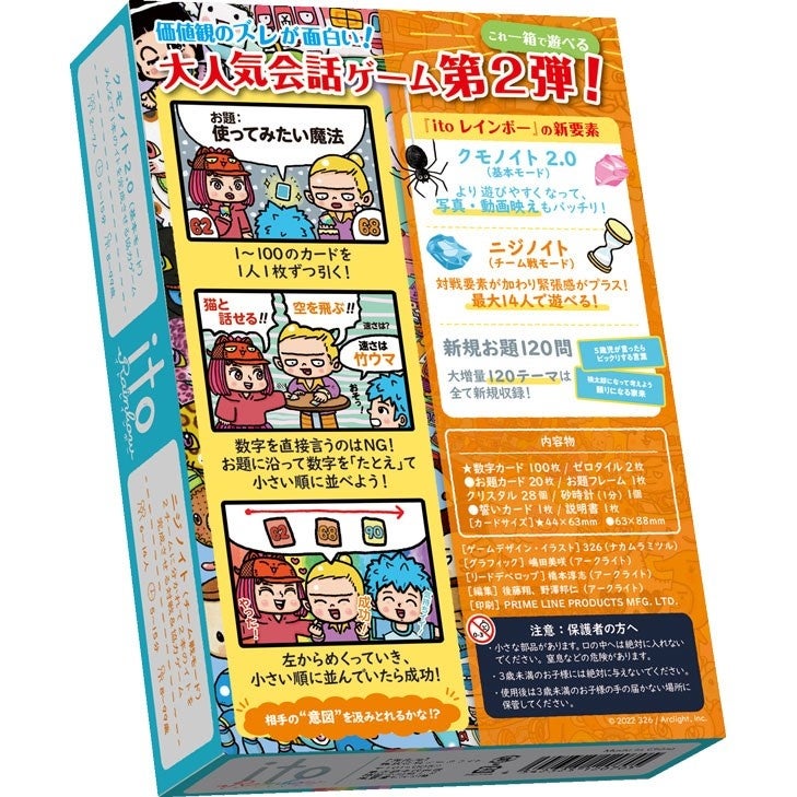 株式会社アークライト(本社:東京都千代田区)は、会話が楽しい協力ゲーム『ito レインボー』を2022年12月15日(木)より発売いたします。