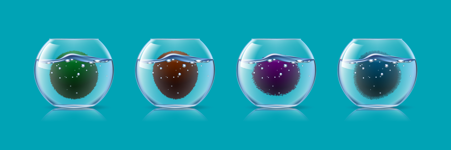 marimo NFTの種類:色100種、形10種 ※自由選択はできず、Mintするとランダムで1種類が選ばれます