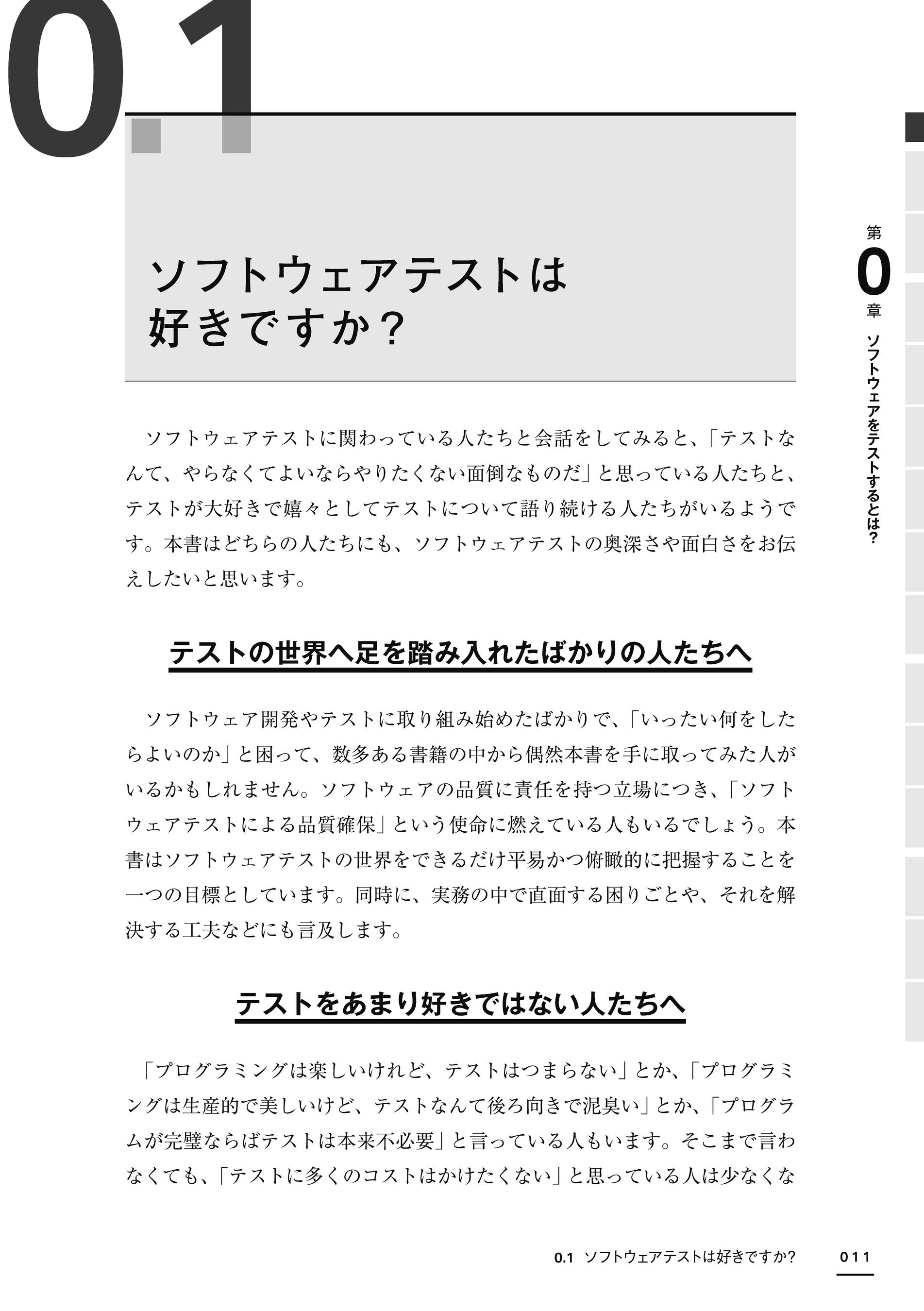 ソフトウェアテストは、テスターや品質保証部門だけの仕事ではありません。単に不具合を見つけ出す以上の役割があるのです。本書は、そのような「ソフトウェアテストの広い役割を知ってほしい」と思って執筆しました。