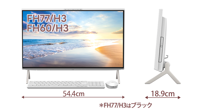 「FH60/H3」をベースに、『AMD Ryzen™ 7 プロセッサー』や、2ndストレージ(約1TB HDD)、BDXL™対応 Blu-ray Discドライブを選択できる「WFB/H3」を提供します。新たにMicrosoft 365 Basic+Office Professional 2021をお選びいただけるようになりました。