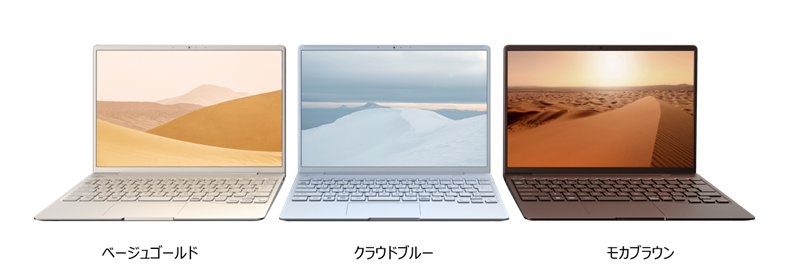 13.3型ワイド液晶を搭載したカジュアルモバイルパソコンのCHシリーズでは、画面の周りを限りなく細くした4辺狭額縁を採用。服やアクセサリーのようにパソコンも自分らしく、従来機種から人気の「ベージュゴールド」「クラウドブルー」「モカブラウン」とトレンド感のある3色のカラーバリエーションから気分が上がるカラーをお選びいただけます。従来からの軽さや堅牢性に加え、メモリ16GB搭載による基本性能の強化、バッテリー駆動時間を26.1時間に延ばすとともに静音性を向上させ、モビリティを強化しました。アプリケーションでは、従来からのFMV独自のAIメイクアップアプリ「Umore(ユーモア)」に加え、使い慣れたスマホでFMVの各種操作が可能となる「FMVコントローラー」、自分好みの画面割に一瞬でウインドウを配置できる「Layout Magic」を新たに搭載し、自分にあったスタイルでお使いになれます。