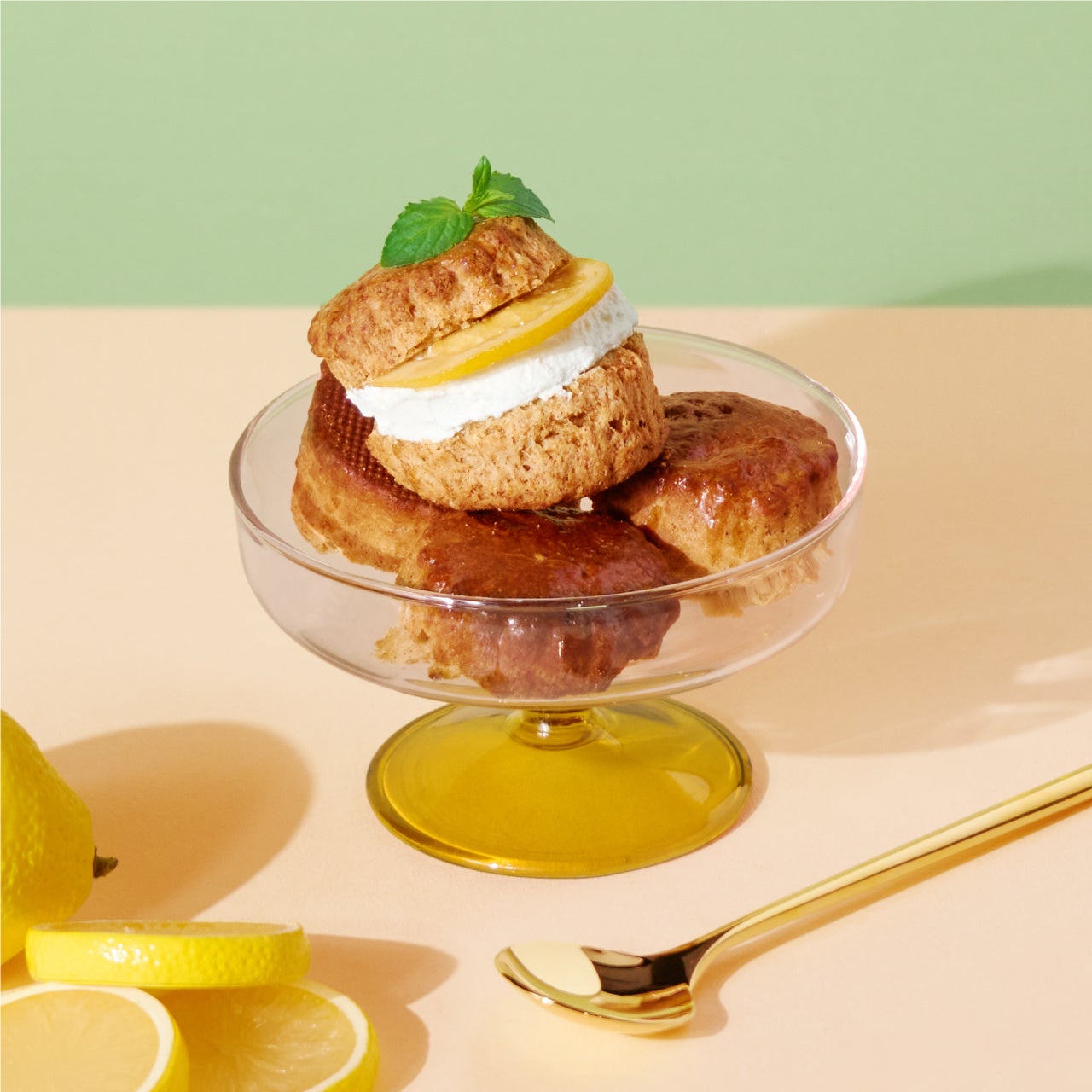 紅茶の風味が感じられるスコーンに、ヨーグルトクリームと砂糖漬けのレモンをサンドしました。コーヒーや紅茶のお供に嬉しい一品です。