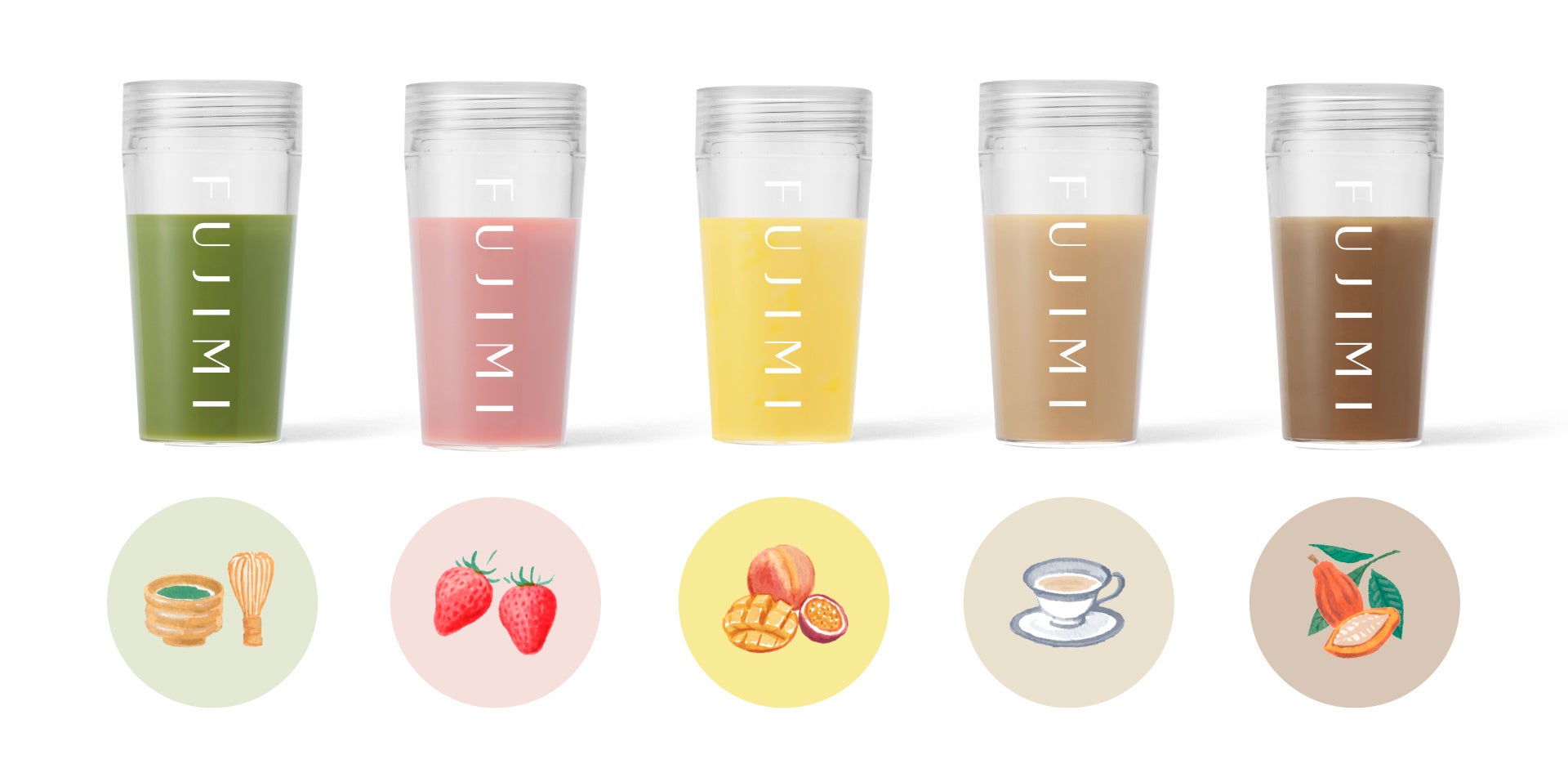 FUJIMIプロテインは独自のパーソナライズ分析からあなたの今のカラダ状態とライフスタイルに基づいて必要な栄養成分を豊富に配合したプロテインです。45種類以上の栄養成分からあなたにぴったりの成分を配合したプロテインをセレクトいたします。味はリッチストロベリーミルク、エクストラ抹茶ミルク、ロイヤルミルクティー、ダブルカカオ、トロピカルVCの5種類をご用意しております。
