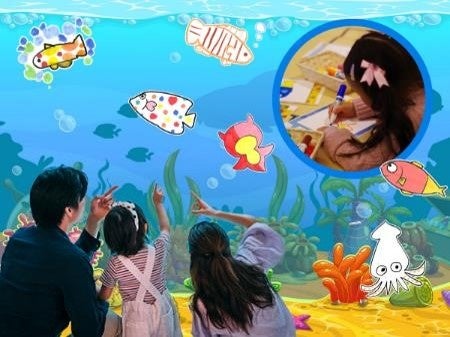 紙に描いた絵をスキャナーで取り込むと、画面の中で動き回るアプリケーションです。コンテンツは「水族館」「恐竜」「ハロウィン」「クリスマス」など多数あり、季節やイベントに合わせて選べるほか、背景や動き方をカスタマイズすることも可能です。