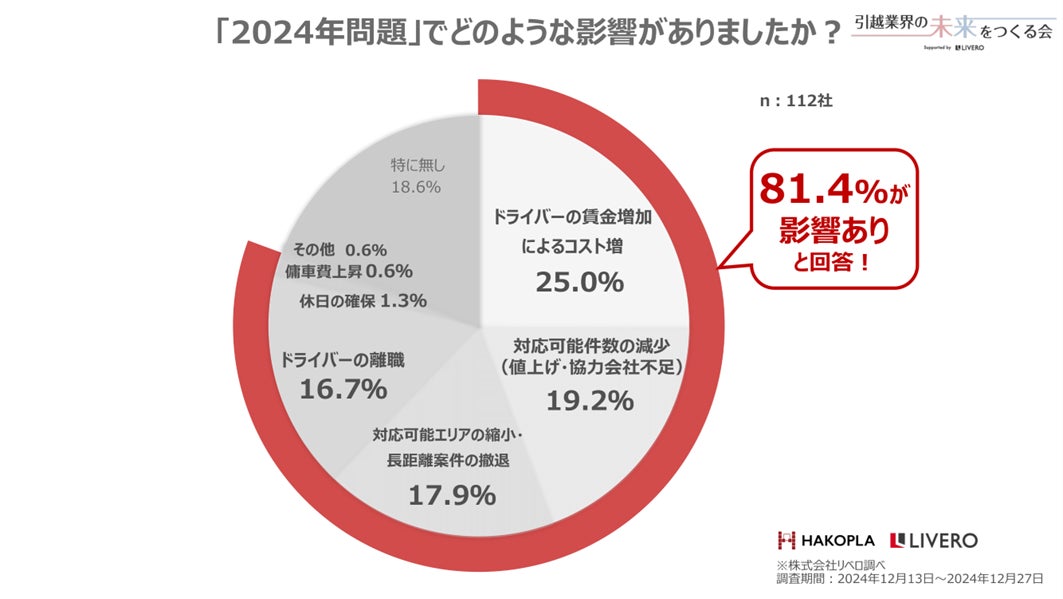 ■現状81.4%の引越会社が『2024年問題』による深刻な影響を受けている