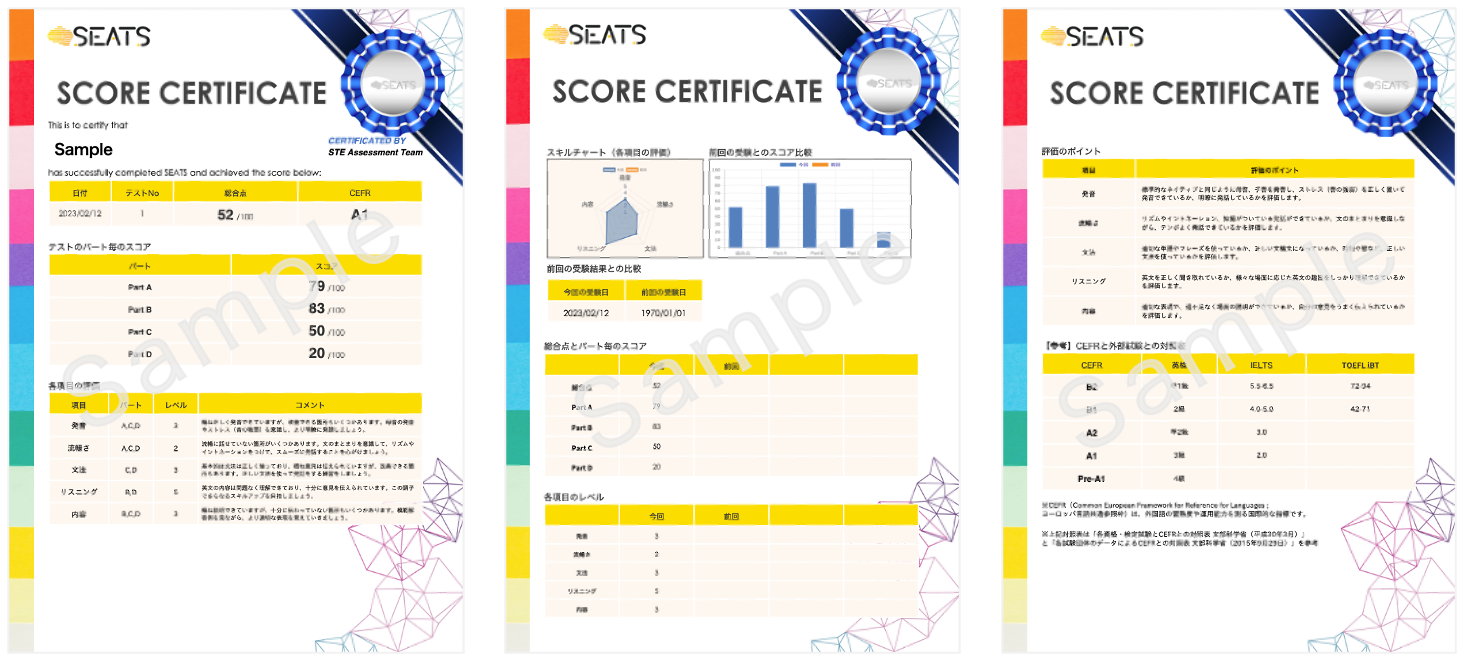 SEATSは全国の中学・高等学校向けに販売する英語のスピーキングテストです。都立高入試に活用される英語スピーキングテスト「ESAT-J」の対策として東京都の数万人の受験実績がある「STE®︎」というテストのシステムをベースに開発を致しました。都立高校等でもご利用いただく見込みです。またSEATSの販売については、大手旅行代理店との共同販売を行う予定です(近日公開)。