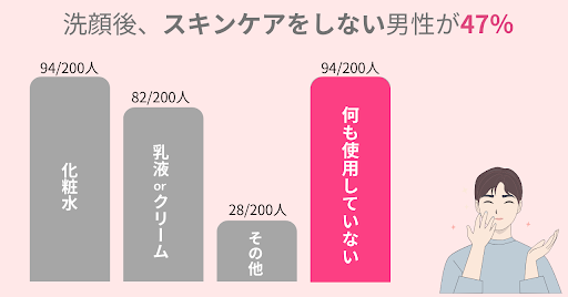 ・男性の47%が洗顔後、スキンケアをしない