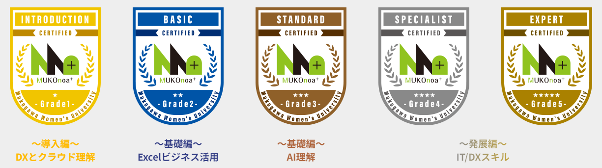 武庫川女子大学リカレント教育「MUKOnoa+(ムコノアプラス)」が、企業向け「DX人材育成プログラム」をリリース!修了生には、5種類のオープンバッジが授与されます。