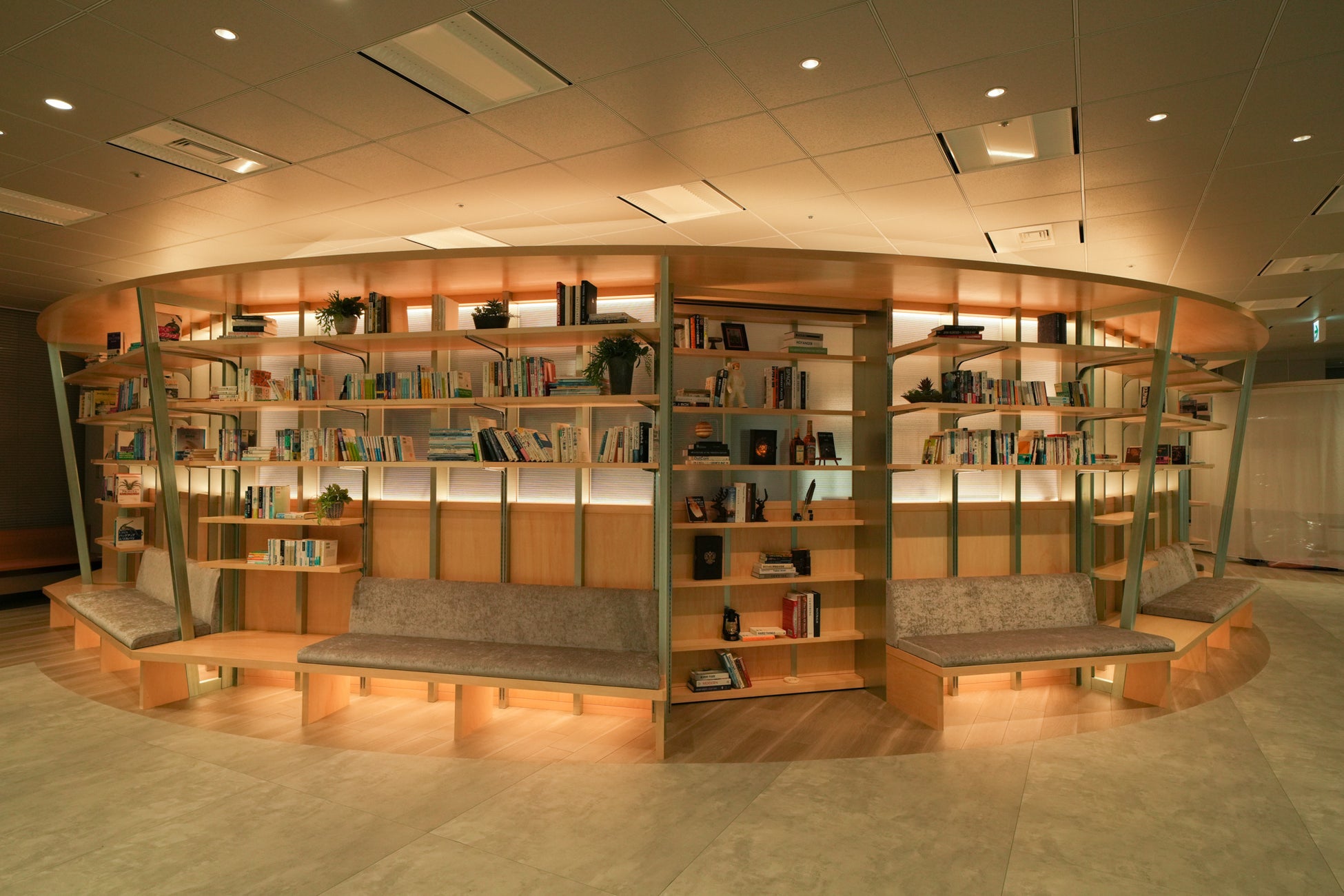 渋谷オフィスで社員の憩いの場となっていた「AJITO」は、ライブラリー「OASIS」と融合。その空間デザインを一新して虎ノ門に復活します。外観では一見すると巨大な本棚ですが、秘密の扉をくぐるとシークレットBARが登場します。ステージなども備え付けることで、小規模のイベントも開催可能。創造的な活動の拠点となることを目論みます。