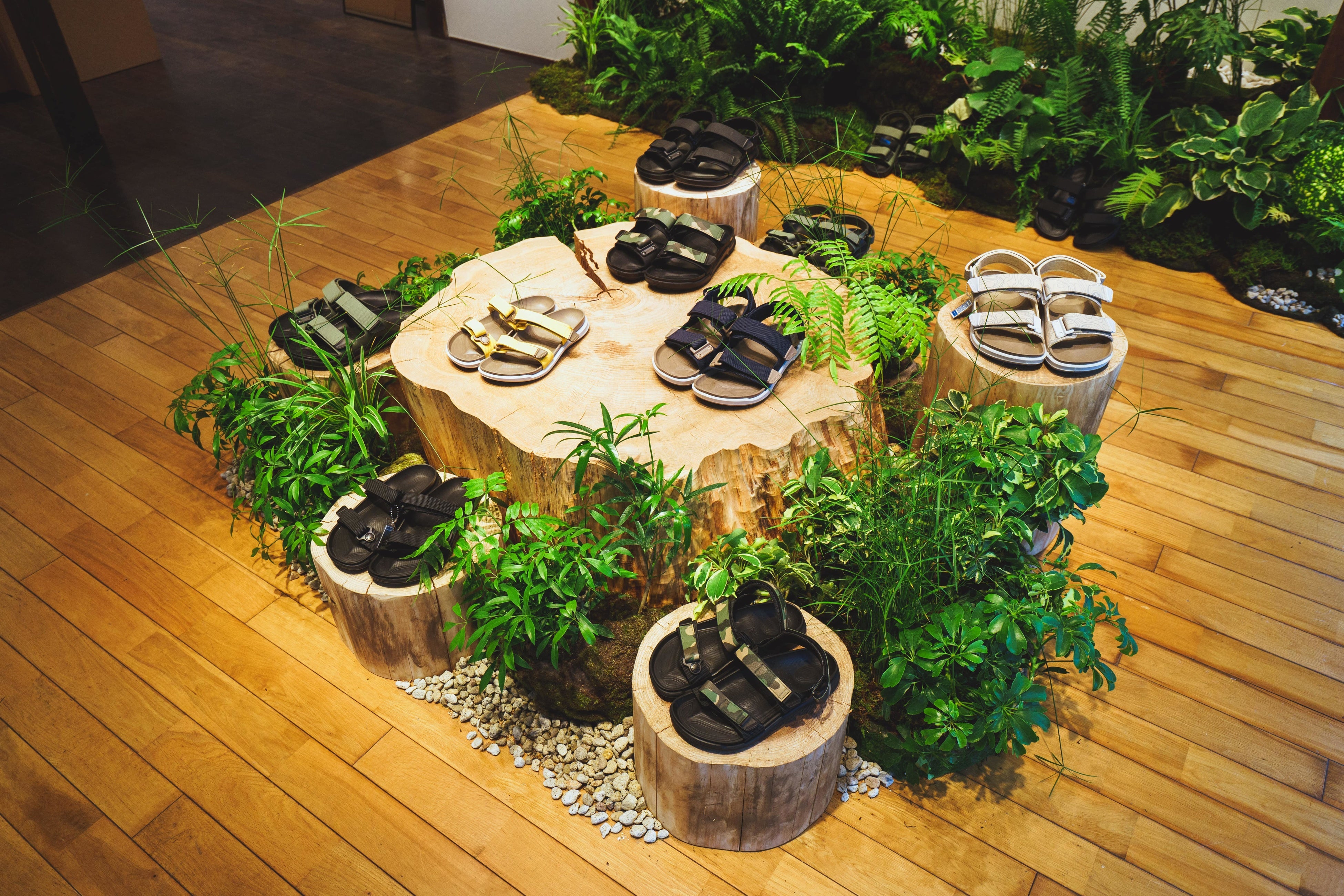 6月1日から開始された三期目となる今回は、自然を楽しむライフスタイルの「NATURE」をテーマに、清々しい緑と木々でショップを演出しています。この期間中には、今シーズン初登場となる防水機能を備えたアウトドアサンダルのクロスエレメントをはじめ、ここでのみご覧いただけるアイテムなどを幅広くご紹介しています。