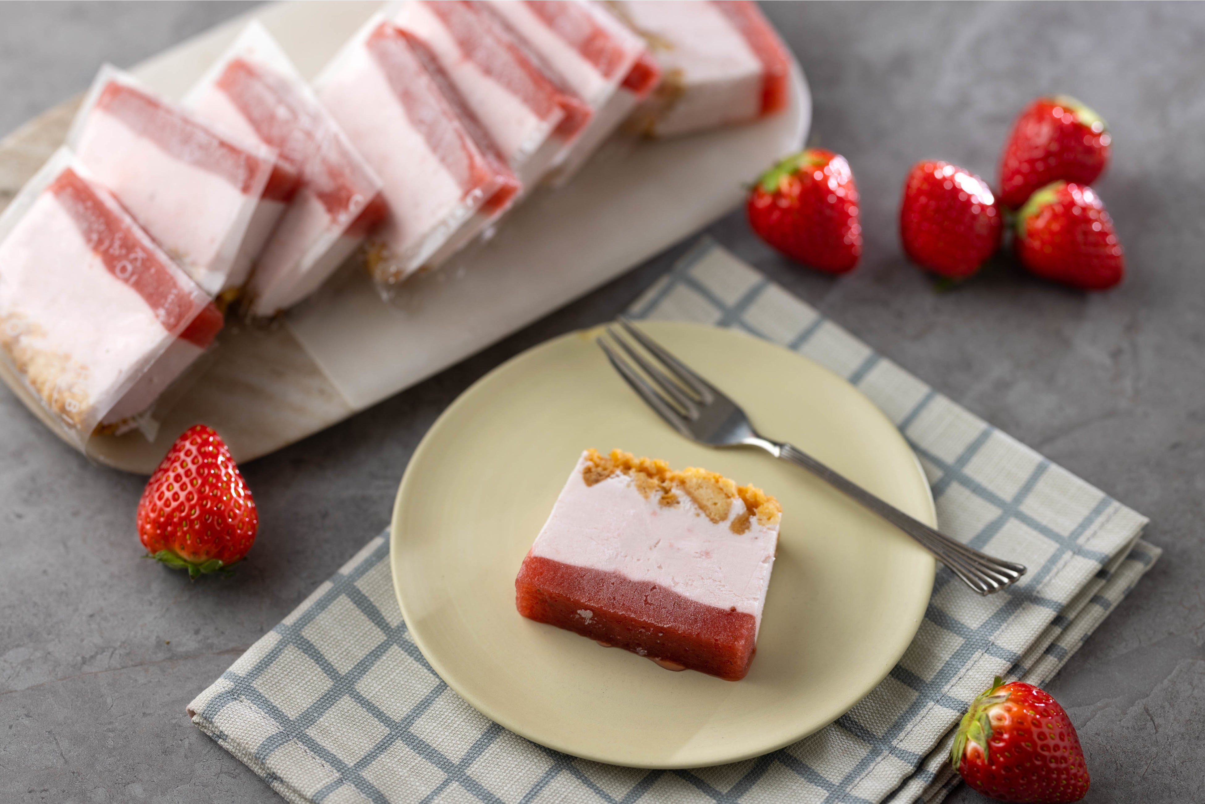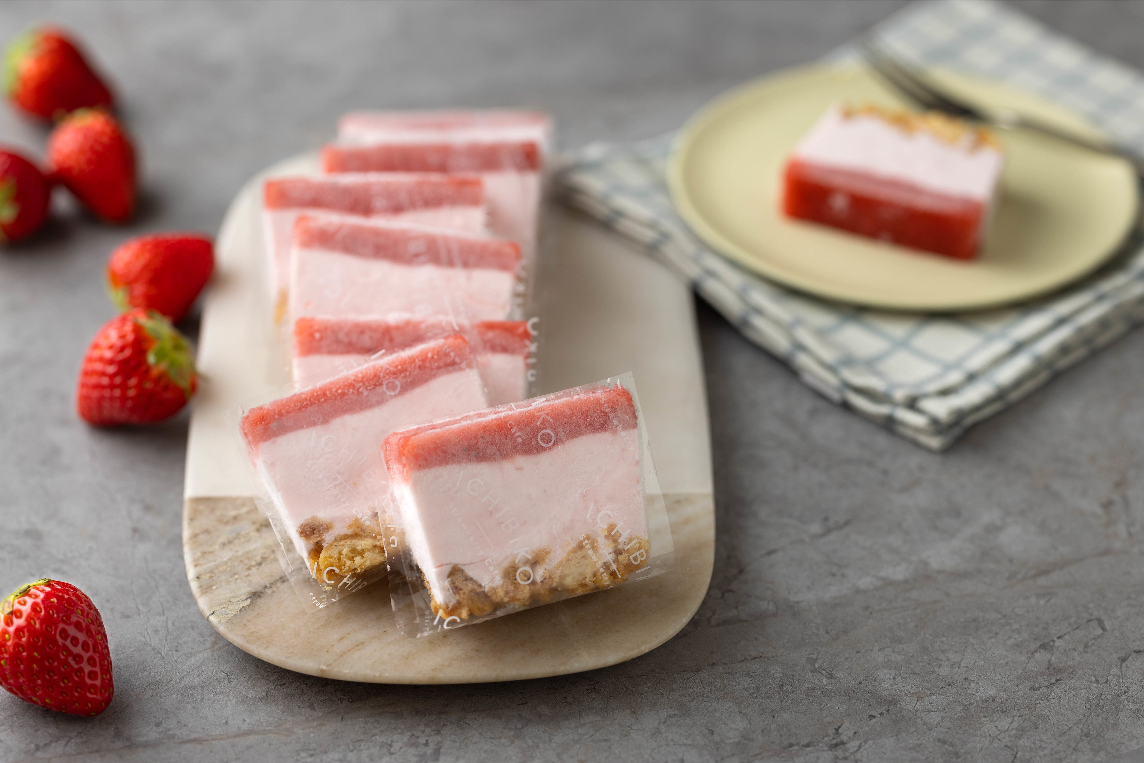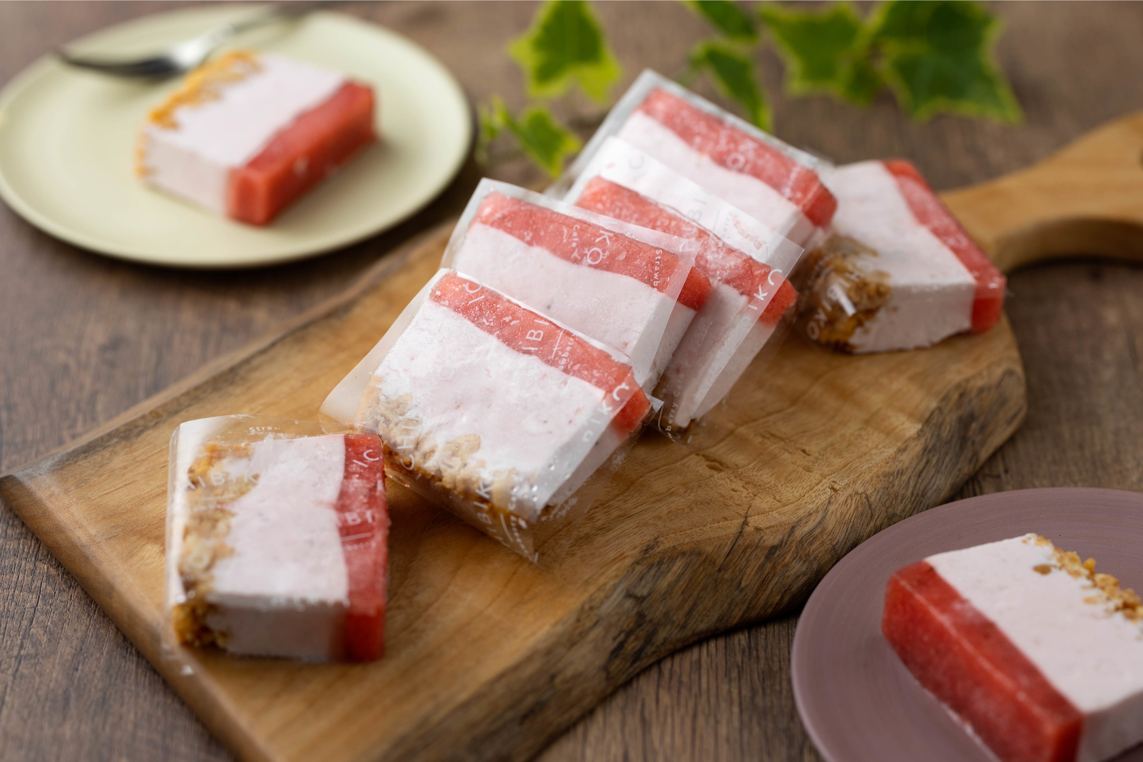 苺の冷凍プレミアムスイーツ「すっぴん苺のレアチーズケーキ」リニューアル発売 / ミルクとアーモンドのコクでよりおいしく濃厚な味わいに / 8個にカット済みで”切る手間いらず”に