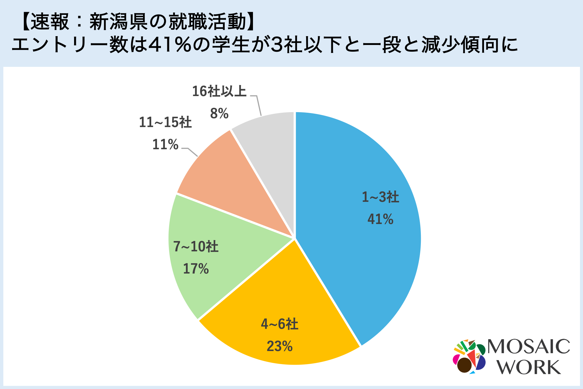 1.新潟県の学生の41%は「1〜3社」のエントリーで就職活動を終了